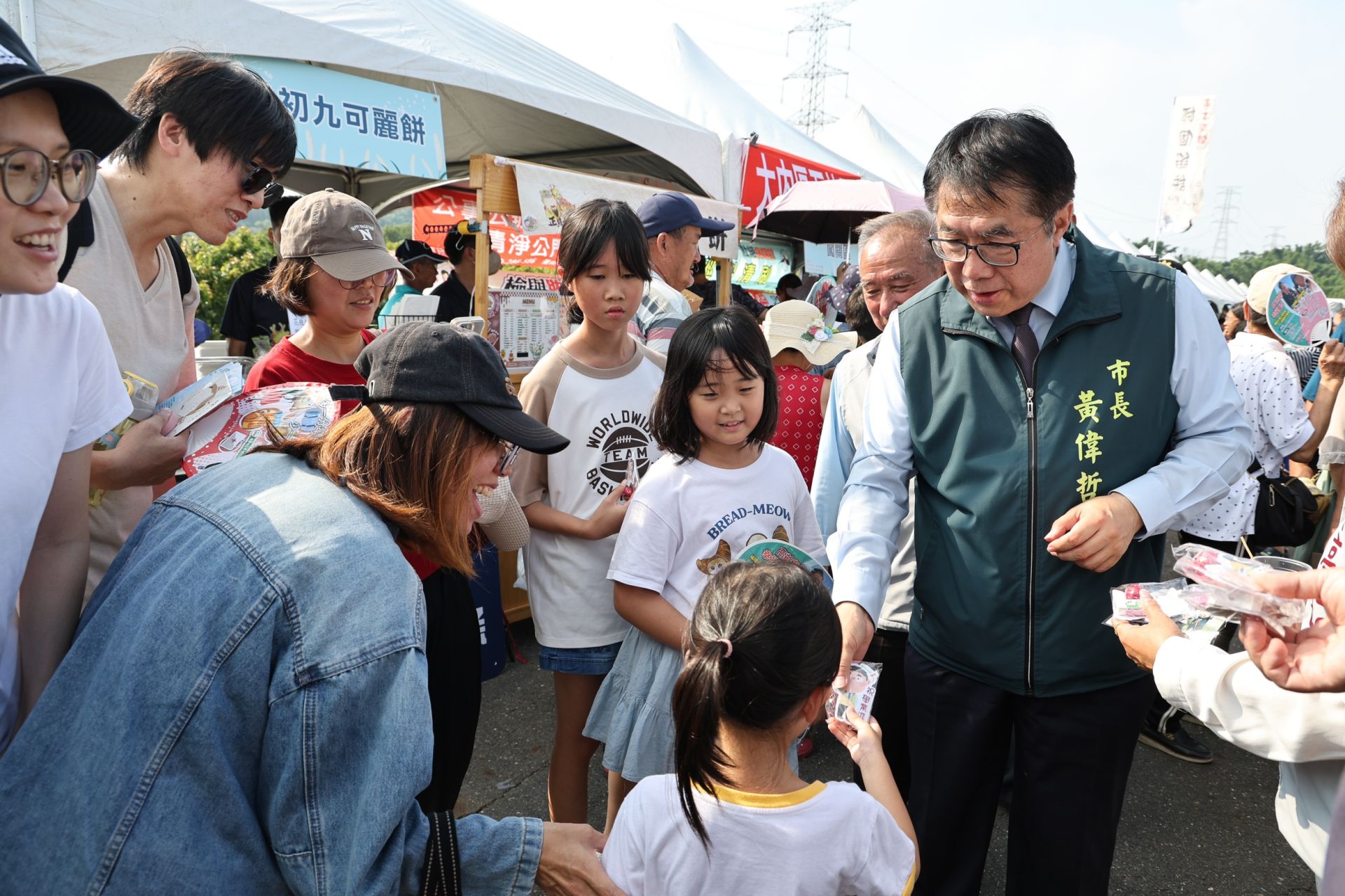 ▲活動現場除展售酪梨、木瓜、芭樂等農產與特色小吃攤,黃偉哲市長也分送糖果給小朋友,增添歡樂氣氛。(新聞處 提供)
