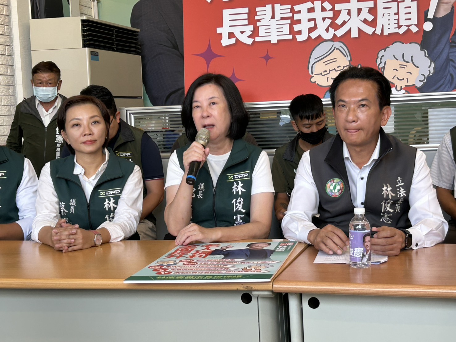 ▲臺南市議長邱莉莉全面支持立委林俊憲提出的五項老人福利措施改革訴求。(記者黃雋淮 攝)