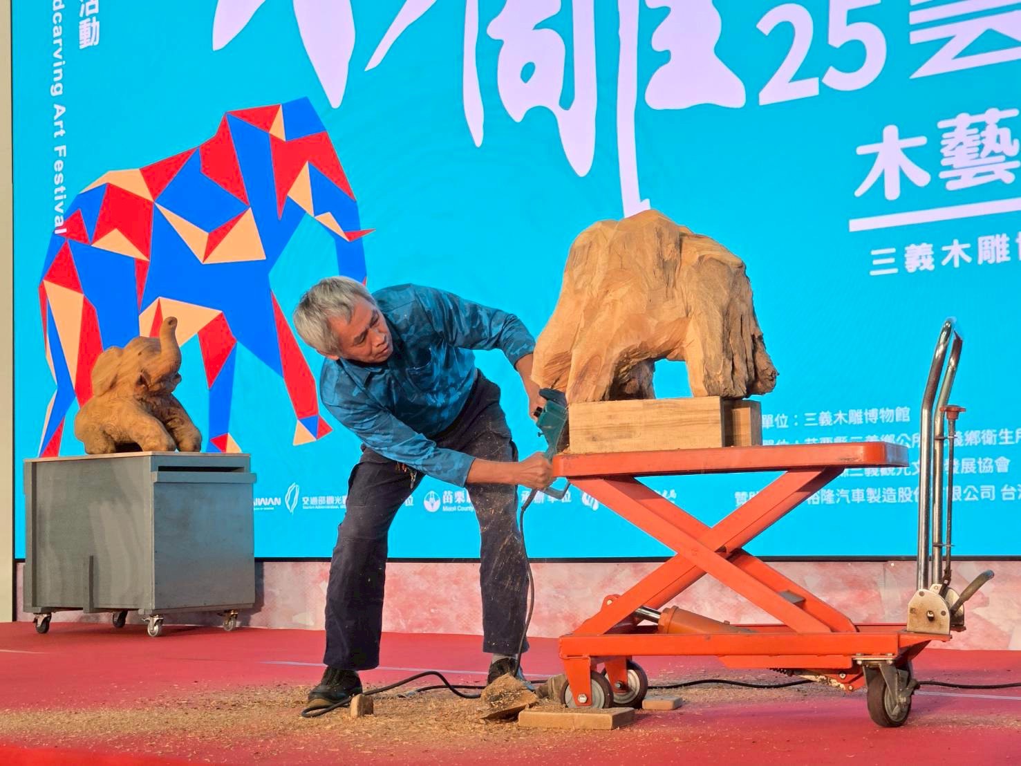 苗栗三義年度最重要的盛會《三義木雕藝術節》,將於114年10月10日(五)至10月12日(日)雙十國慶連續假期,在三義木雕博物館、水美藝術街盛大舉行,今(2)日於縣府一辦召開活動前記者會,特別邀請了木雕大師簡明光老師現場展現木雕技藝,現場創作「大象」。同時邀請三義木雕協會、水美商圈代表、木雕、文創業者以及三義在地社區發展協會皆參與記者會,展現各界為推動三義觀光旅遊共同努力的決心。