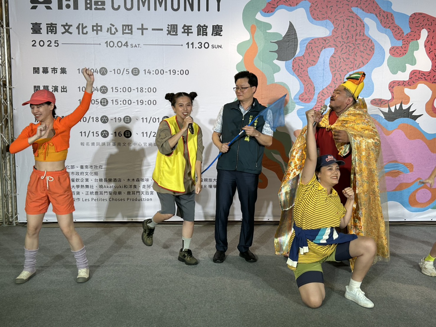 副秘書長徐健麟表示,文化中心41年來不只是臺南的重要藝文據點,更是市民共同的文化記憶。文化局專門委員方敏華說明,今年以「共同體」為題,象徵文化場域與市民的連結與共創,期盼透過多樣化的節目與跨界合作,讓更多人走進劇場,感受臺南文化能量的延續與累積。期待文化中心館舍整建前,創造共同的地方記憶。同時也感謝發跡於臺南的小北百貨、正統鹿耳門聖母廟及鹿耳門天后宮以公益角色熱情響應,共同支持在地文化永續。