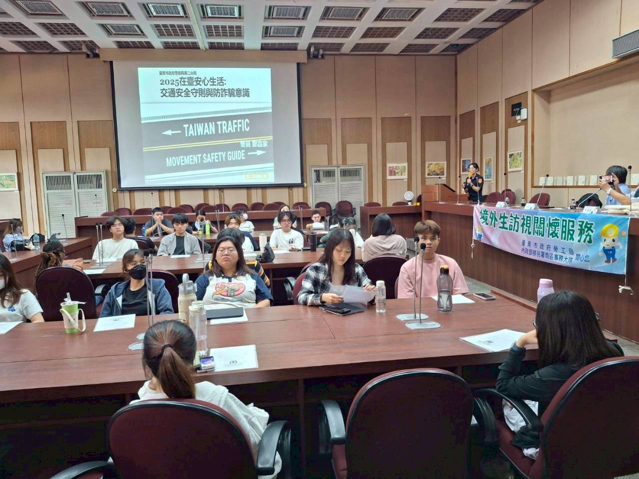 此次宣導會以「僑外生必知的臺灣校外生活守則工作坊」為名,課程包含警察局講授交通安全守則與防詐騙意識,提醒境外生在日常生活中提高警覺,避免意外與受騙。市府透過和移民署間跨機關合作,共同守護境外生在臺的學習與生活安全。