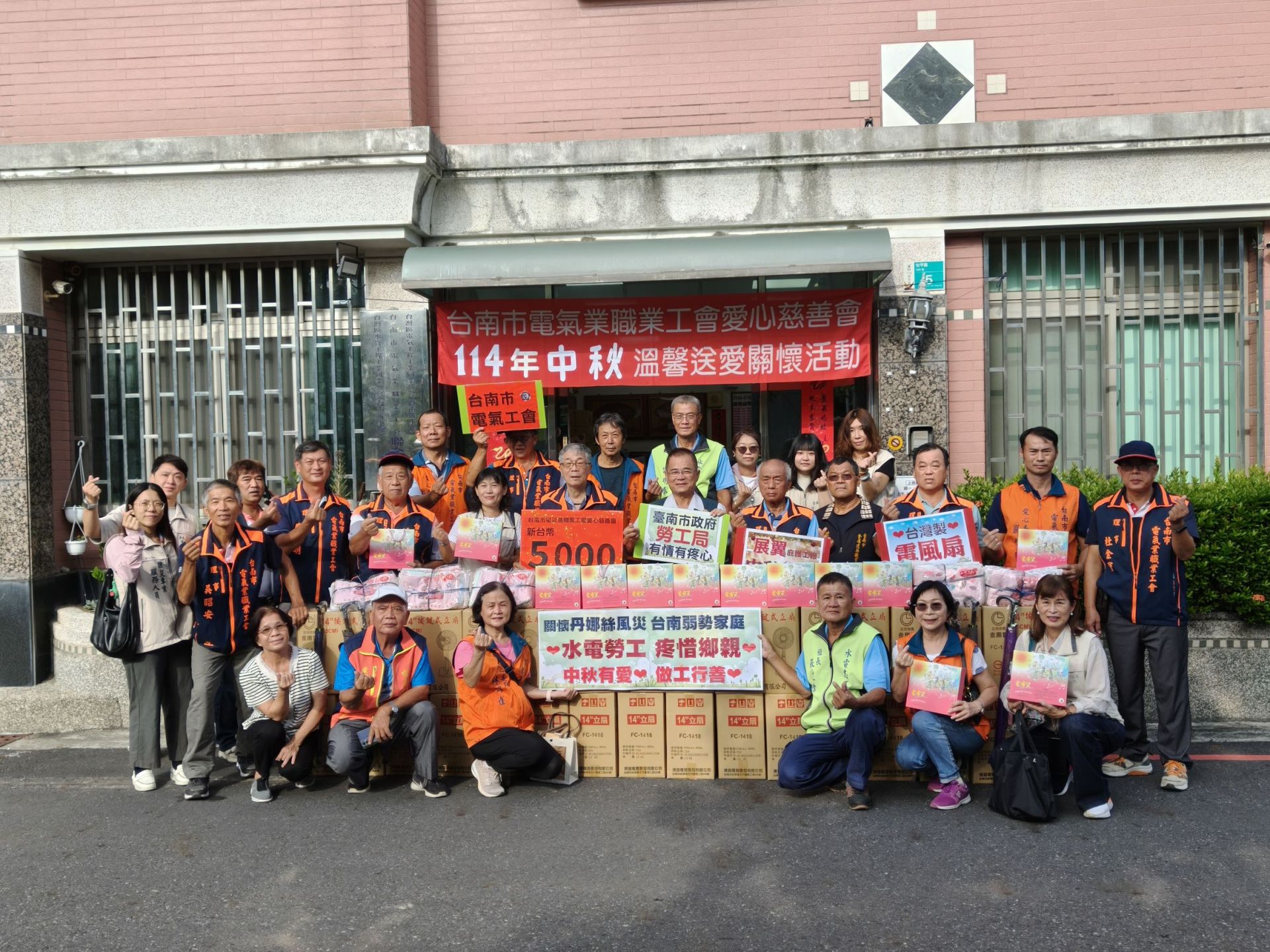 長期投入「做工行善團」房屋修繕的台南市電氣業職業工會,今(3)日特地準備紅包、中秋禮盒、電扇、雨傘等物資,以及台南市金屬建築結構及零組件製造職業工會所提供的愛心紅包,關懷弱勢修繕家庭,勞工局長王鑫基代表市長黃偉哲頒贈感謝狀,感謝工會愛心。勞工局與工會代表人員兵分五路前往安南區、佳里區、學甲區、鹽水區、後壁區、七股區、將軍區、北門區、西港區及官田區,共關懷30戶弱勢修繕家庭,關愛的足跡遍及大臺南10個行政區。而參與這30戶修繕案除了原本勞工局桶箍的轄內相關修繕工會外,因應今年丹娜絲颱風協助復原,新舜營造有限公司也加入修繕行列,該公司總監張憲仁也率團隊參與今日的送物資後續關懷活動。