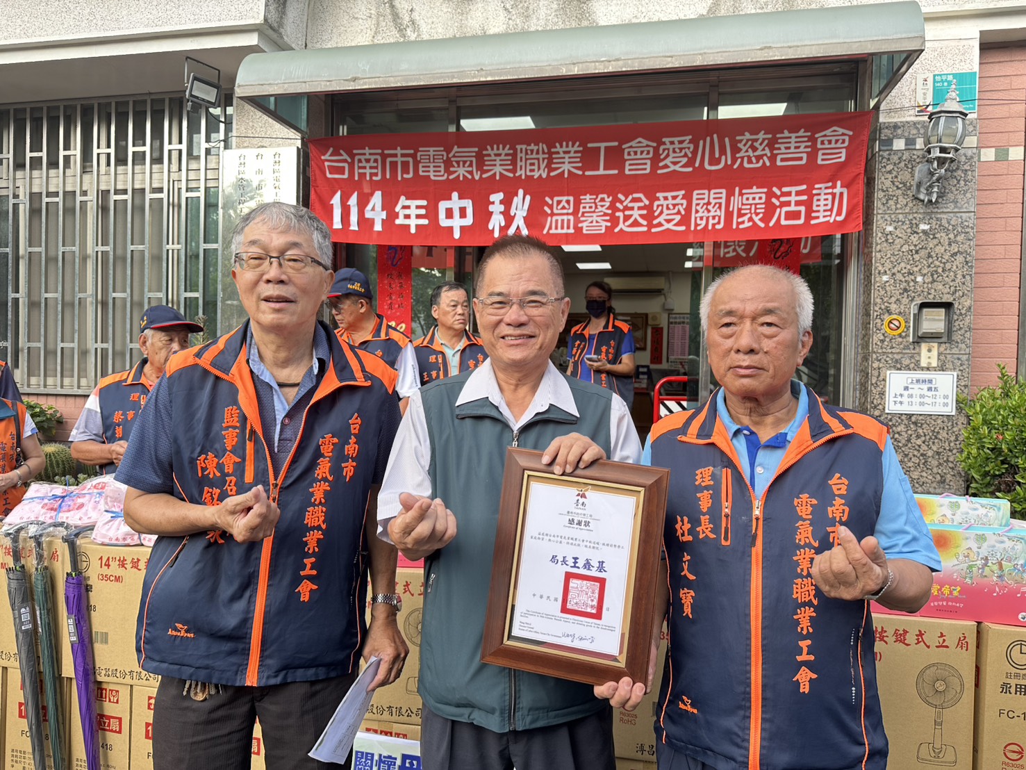 勞工局長王鑫基表示,弱勢家庭房屋修繕不僅是修補硬體設施,更重要的是讓這些弱勢家庭感受到關懷與支持。感謝台南市電氣業職業工會及台南市金屬建築結構及零組件製造職業工會攜手熱情相挺,出錢出力,用最實際的行動關懷弱勢家庭,散播社會正能量。小小的心意大大的關懷,希望藉由此次贈送中秋節物資的活動,讓弱勢家庭感受到佳節氛圍及社會的溫情,一同暖心過中秋,共享臺南「希望家園」美好的氛圍。
