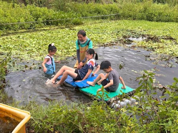 圖3::農業局今年推出「專屬」野蓮田生態服務給付,鼓勵農友在野蓮池中央加種菱角或芡實,吸引水雉築巢繁殖。