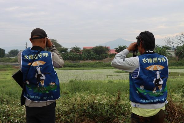 圖6:農業局在推動水雉棲地復育過程中,輔導「美濃區蔬菜產銷班第 18 班」成立全台第一個由農民組織成軍的「瀕危物種巡護隊」,專責守護美濃湖。