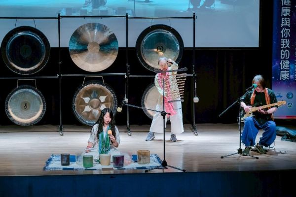 圖3:「量子的世界,行星健康與你我的健康」國際工作坊在銅鑼宇宙樂坊演奏的銅鑼樂曲「宇宙的呢喃」中揭開序幕。