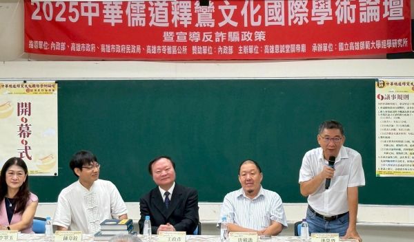 【視傳媒記者吉雄世高雄報導】國立高雄師範大學於10月3日前辦理「2025中華儒道釋鸞文化國際學術論壇」,邀請來自德國、越南、馬來西亞、中國大陸及臺灣的學者專家齊聚一堂,深入探討跨國宗教文化與扶鸞信仰的當代表現與社會價值。論壇由高師大經學研究所與高雄意誠堂關帝廟攜手合辦,除推動學術交流外,更設置反詐騙宣導專區,呼應政府政策,體現「知識交流、防詐同行」的理念,打造兼具文化深度與社會責任的新典範。