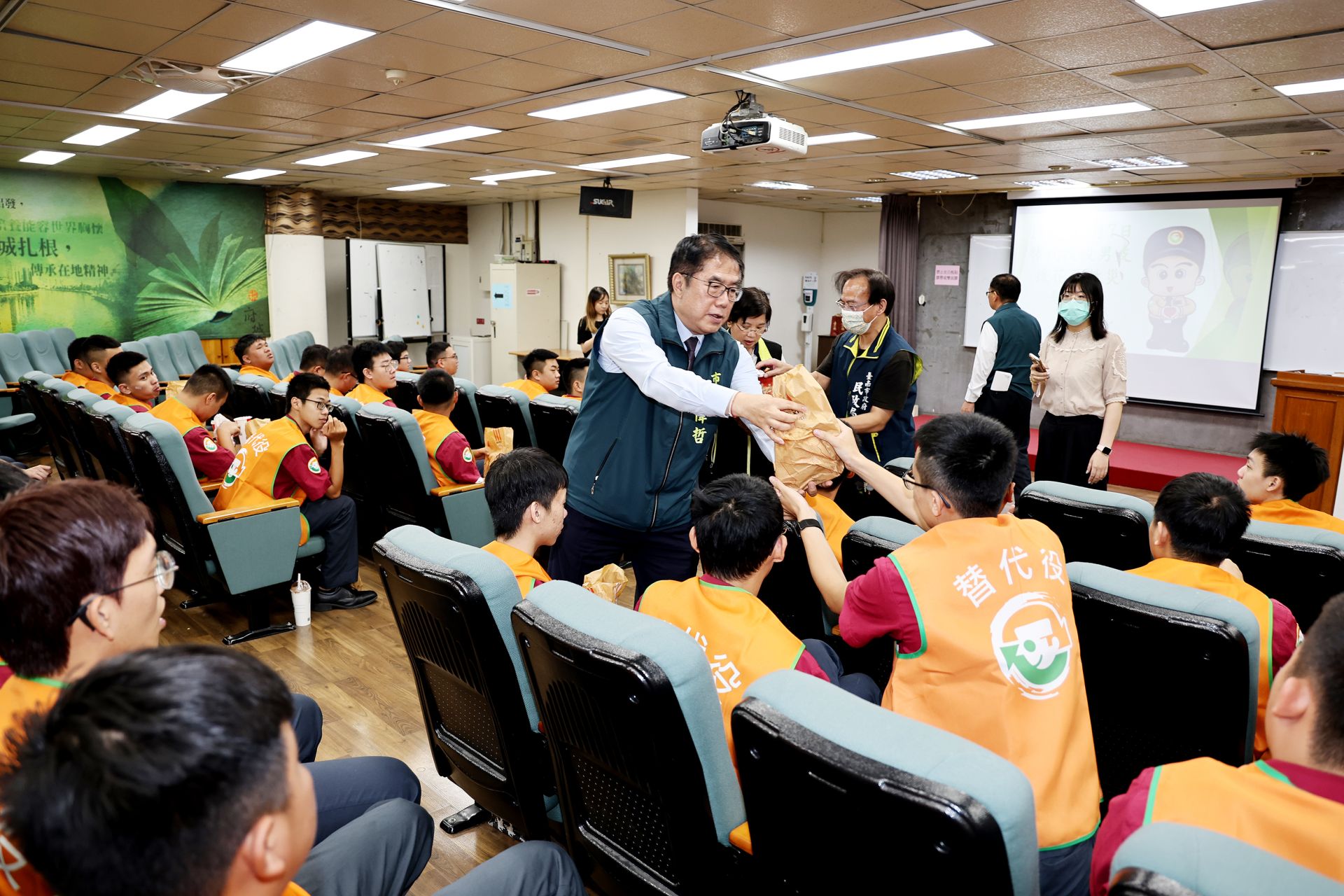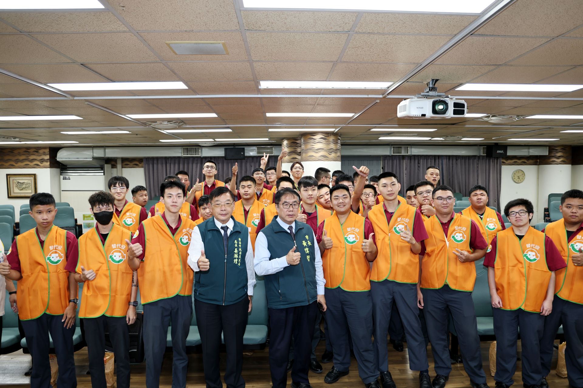 ▲市長黃偉哲肯定內政部替代役訓練及管理中心專責輔導員孫亦韜辛勞帶隊。(新聞處 提供)
