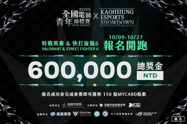 【視傳媒記者吉雄世高雄報導】由高雄市政府指導、青年局與運動發展局共同主辦,高雄捷運、中華民國電子競技運動協會、樹德科技大學及正修科技大學協辦的第五屆「全國電競青年錦標賽 x KAOHSIUNG ESPORTS SHOWDOWN」,於10月9日正式開放報名。本屆賽事獲官方指定電競品牌「ROG 玩家共和國」贊助,競賽項目包括《特戰英豪》及《快打旋風6》,每項競賽皆開放256隊報名,參賽選手可獲得150點 MyCard 獎勵,歡迎全台電競好手齊聚高雄,爭取總獎金上看60萬元年度電競榮耀。