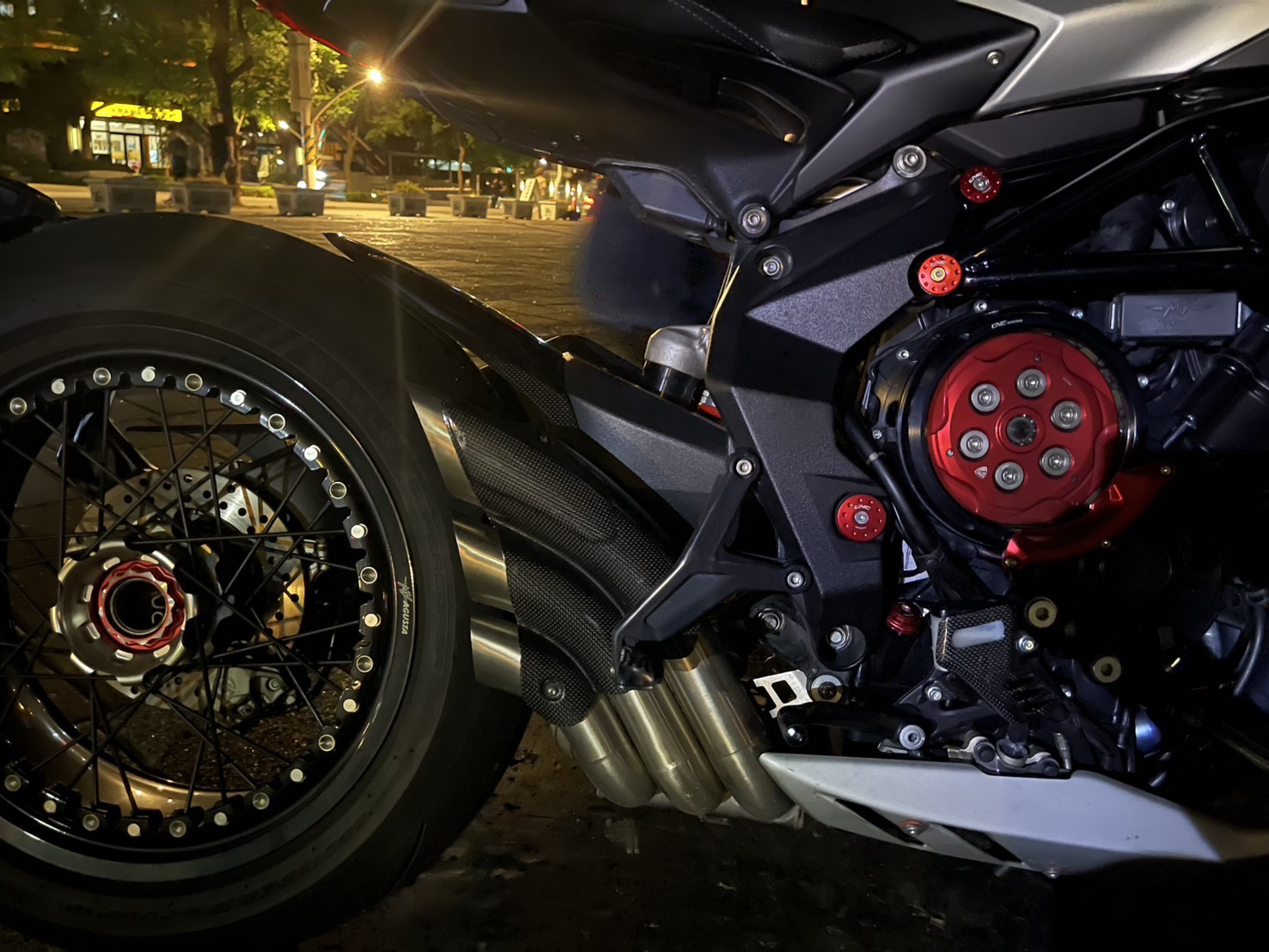 另埔子派出所員警攔檢發現一名騎士騎乘外型顯眼的大型重機車,其排氣管發出高頻渾厚的聲浪,經查詢其為義大利經典MV Agusta Dragster 800RR精品車款,網路上人稱「移動的藝術品、追求純粹的義大利式暴力美學和駕駛樂趣!」,可媲美同屬義大利的高性能車款 DUCATI Streetfighter,騎士稱新車價格就高達138萬,亮麗流線感的外型讓在場執勤人員都嘖嘖稱奇。男性騎士宣稱對騎乘重機車有極為濃厚的興趣,沒想到本日一上路就被攔查,經檢測噪音數值達97分貝、超標3分貝,當場噴飛1800元。