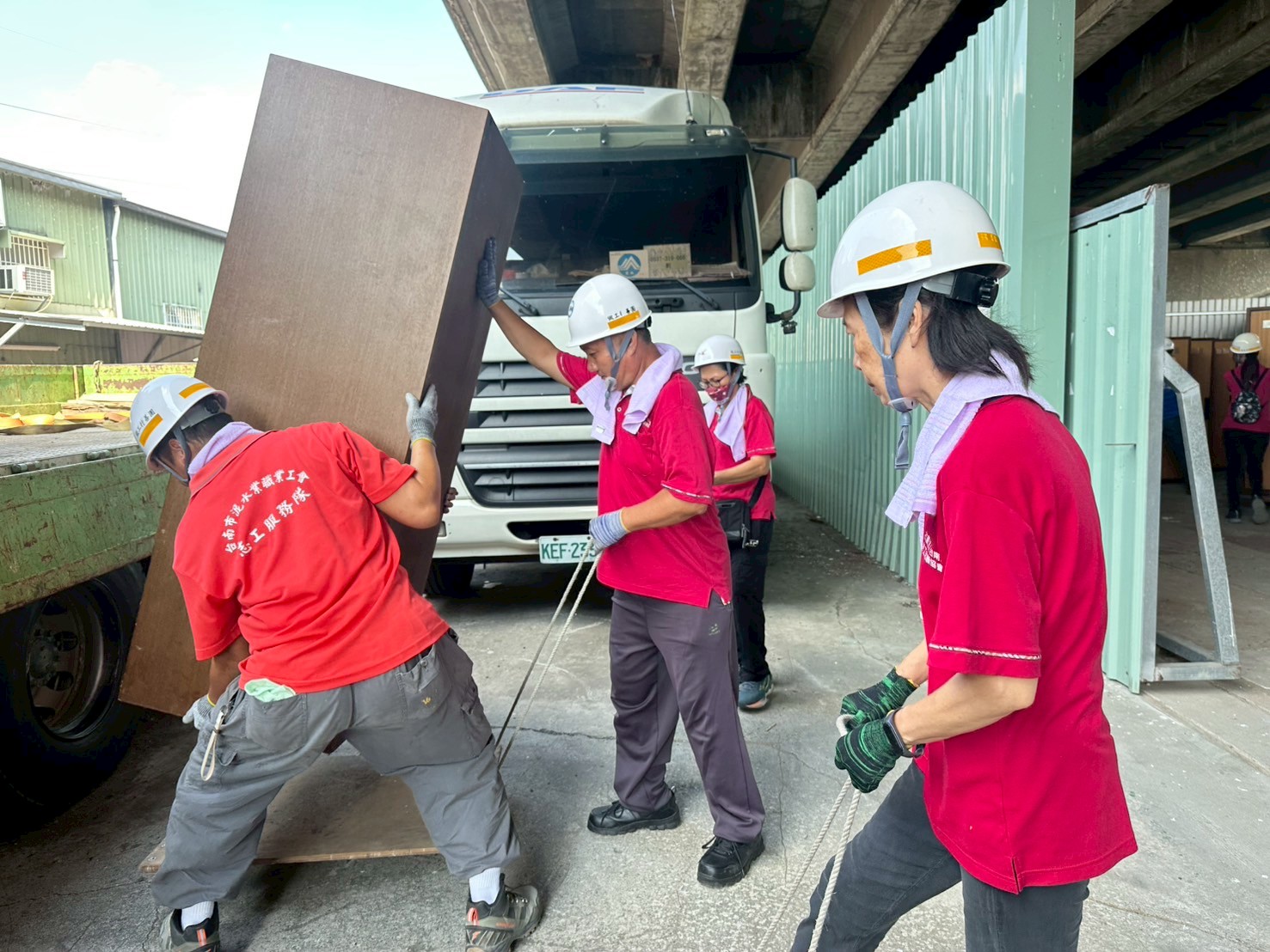 ▲做工行善團志工正忙著搬二手家具給案主。(勞工局 提供)
