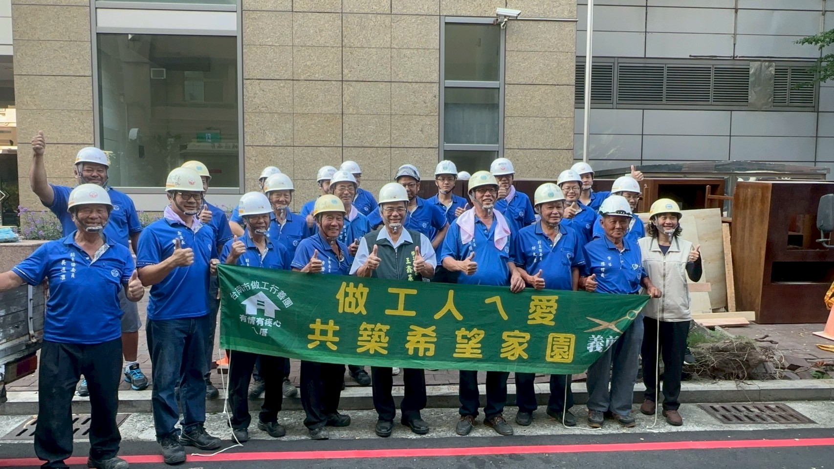 另台糖長榮酒店近期進行內部裝修,捐贈汰換的衣櫥、木桌,今日由木工、志願服務協會、泥水工會等志工完成搬運,將該批家具存放官田區二手倉庫備用。臺南市近年多次受災,市長黃偉哲秉持「希望家園」與「垃圾變黃金、黃金變愛心」理念,請勞工局「做工行善團」運用二手家具再利用,協助受災戶重建家園。112年白河區豪雨成災,勞工局調度木工工會志工整備家具,送出搬運單人床11座、雙人床6座、茶几桌5組、辦公桌2組,以及餐桌、衣櫥、矮櫃、塑膠桌椅等,送給該區十幾戶淹水受災戶,完成黃偉哲市長交代任務,讓災民歡喜迎中秋;今(114)年初地震重創楠西、玉井、南化等地區,志工兩天內完成家具調度,將單人床22組、衣櫥20組、桌子10張、椅子50張等二手家具送抵南水署宿舍布置,並準備床包與枕頭,讓災民感受溫暖。近期為協助丹娜絲颱風受災戶,勞工局再度啟動家具支援,於雙春國小及玉湖國小安置所提供衣櫥19座、床架17個、床墊19個、鐵桌6個、椅子12把、枕頭33個、床罩17個等百餘件家具,協助災民安居。