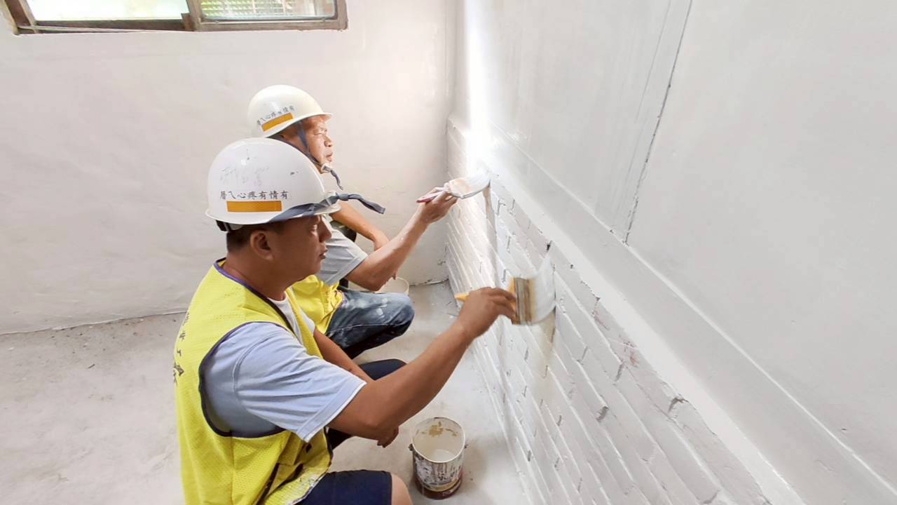▲做工行善團志工正進行油漆修尾工作。(勞工局 提供)