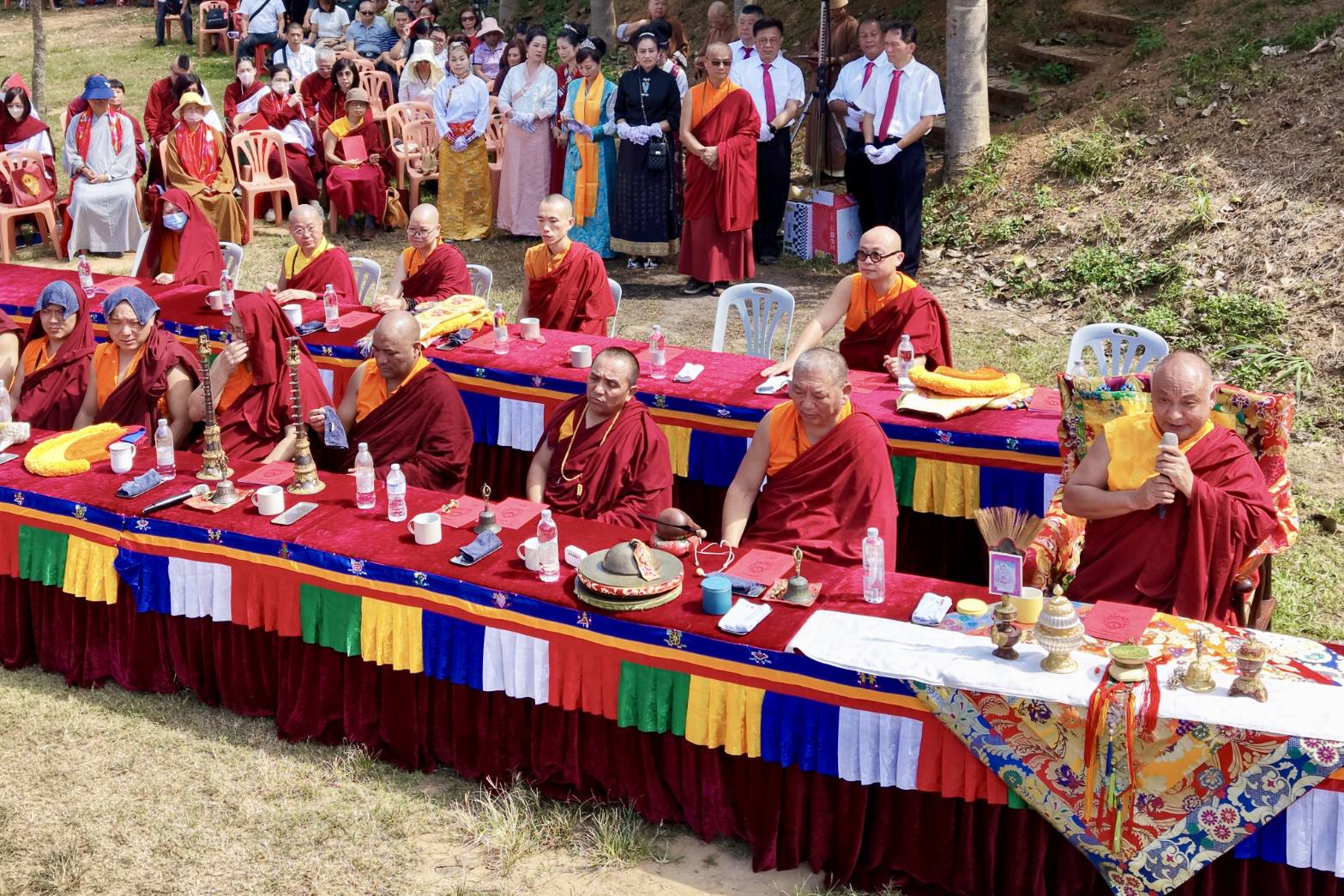 現場貴賓冠蓋雲集,地方首長與佛教界大德齊聚祝賀,包括:苗票縣縣長鍾東錦、苗票縣議長李文斌、苗栗縣政府工商發展處處長詹彩蘋、苗栗縣政府民政處宗教禮俗李賢正科長、台北市議會最高榮譽顧問呂瀅瀅、苗栗縣議員林寶珠、後龍鎮民代表陳美雪、民政處副處長林國竹等人,他們祝福桑耶寺法音遍傳,普利十方有情。信眾繞塔祈願,踴躍參與彩繪、恭書〈心咒〉,現場園遊會商品琳瑯滿目,歡喜共聚福慧道場。