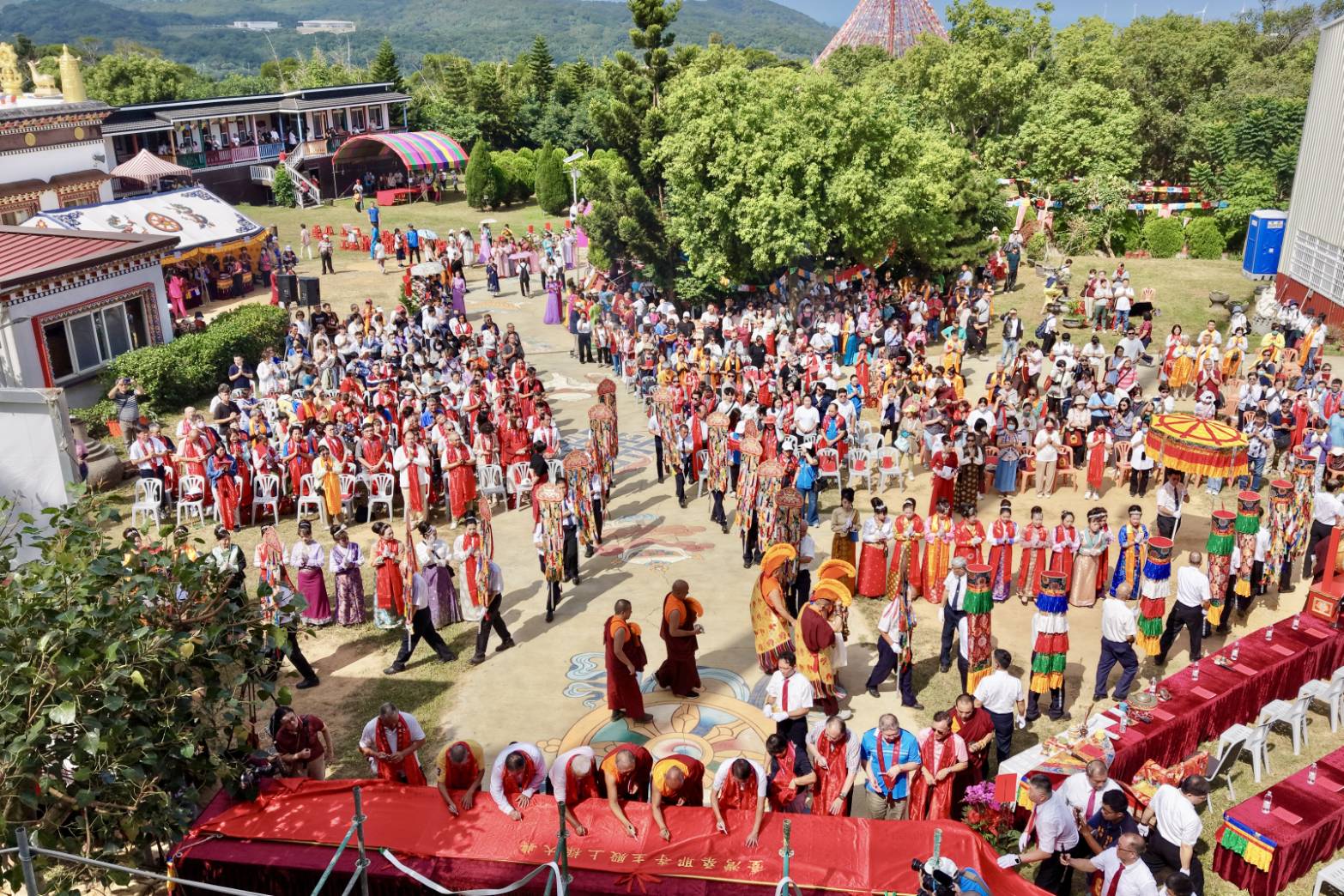 圖說:臺灣桑耶寺舉行主殿上樑殊勝盛典,海內外善信逾千人齊聚一堂,歡喜見證歷史一刻。