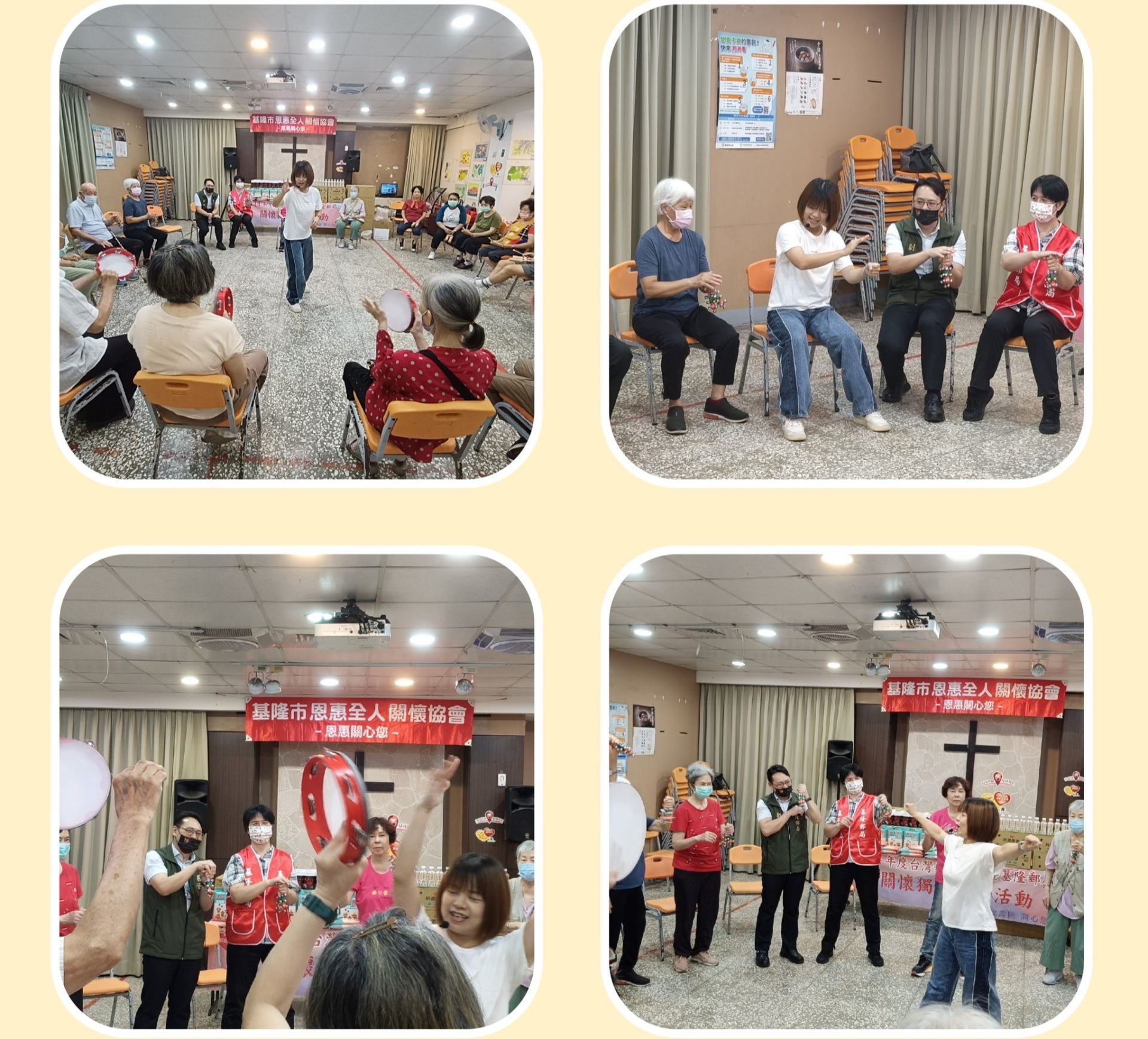 114年10月13日上午10時,台灣郵政協會暨基隆郵局參與基隆恩惠全能關懷協會舉辦「樂齡音樂班」關懷活動,音樂班內容包括鈴鼓、響板、搖鈴及手鐘演奏,透過輕快的節奏與簡易的音樂互動,與長者們感受生活的喜悅。