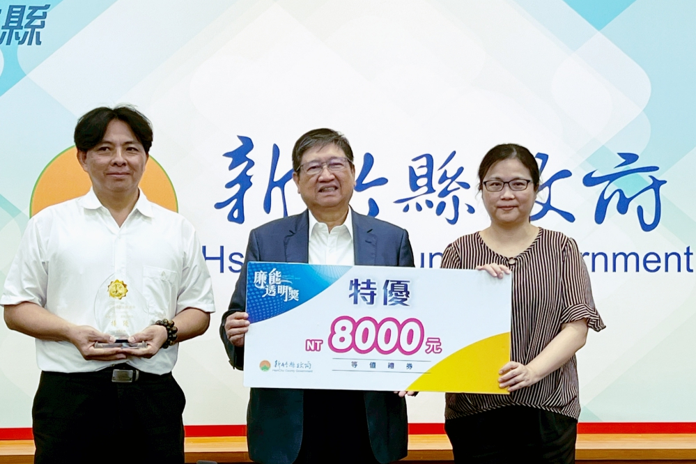 為落實開放政府、貫徹清廉施政理念、朝永續發展目標前進,新竹縣政府政風處辦理 114 年第三屆「廉能透明獎」,共有8件作品獲獎。新竹縣長楊文科今(10/14)日在主管會報中頒發獎座和禮券給獲獎單位,肯定資訊公開透明、以民之利而利之的作為,除了提高行政效能,也讓民眾感受到竹縣府守護廉潔的用心。