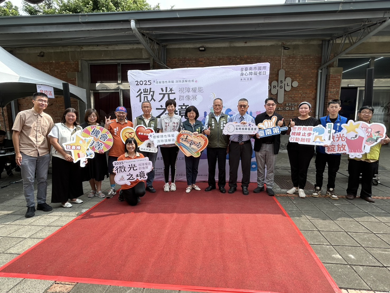 為響應12月3日國際身心障礙者日,臺南市政府社會局自即日起至10月30日於台南文化創意產業園區茉莉工坊辦理「微光之境 視障權能群像展」。今(15)日社會局長郭乃文代表市長黃偉哲出席開幕式,與佑明協會理事長李宏平、策展人楊雅惠女士、台南市聲暉協進會何素真常務理事,社團法人台南市聽障體育運動協會理事長陳治年,總幹事朱櫻梅共同以實際行動參與多感官的沉浸體驗,深入看見視障者的日常與力量,市議員陳怡珍、林俊憲立委服務處代表、邱莉莉議長服務處代表及蔡宗豪議員服務處代表也親自到場致意與支持。