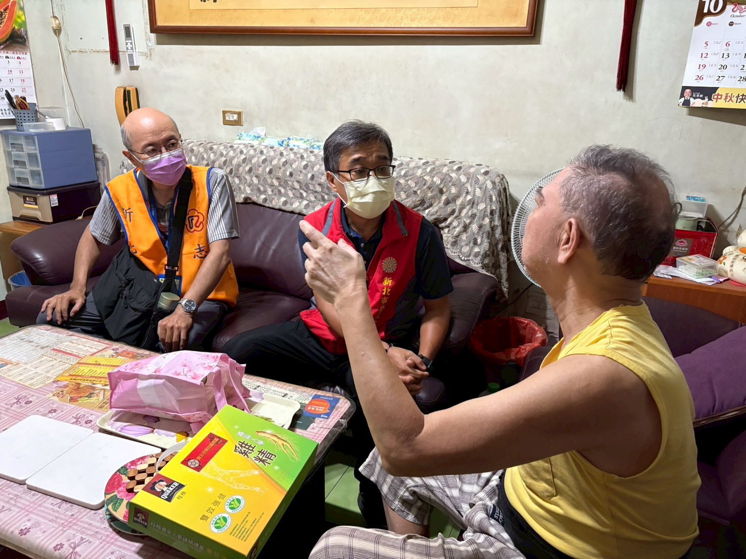 接著拜訪72歲的范伯伯,他因中風行動緩慢,與妻子、女兒同住。妻子清晨外出工作支撐家計,家中仍有貸款需償還。榮服處除致贈物資外,也了解生活狀況並協助媒合合適職缺,盼能改善經濟壓力,范伯伯感受到榮服處的關懷與用心,感到相當感動。