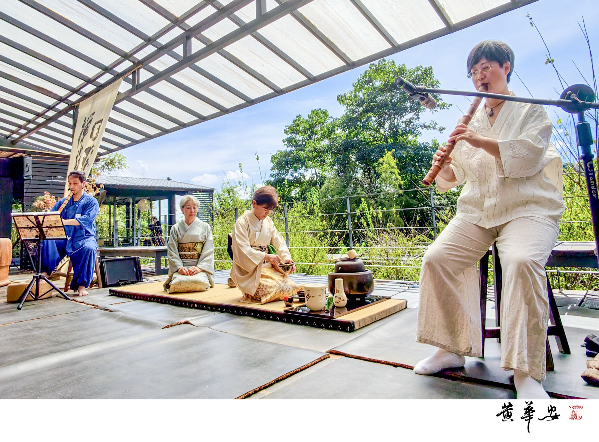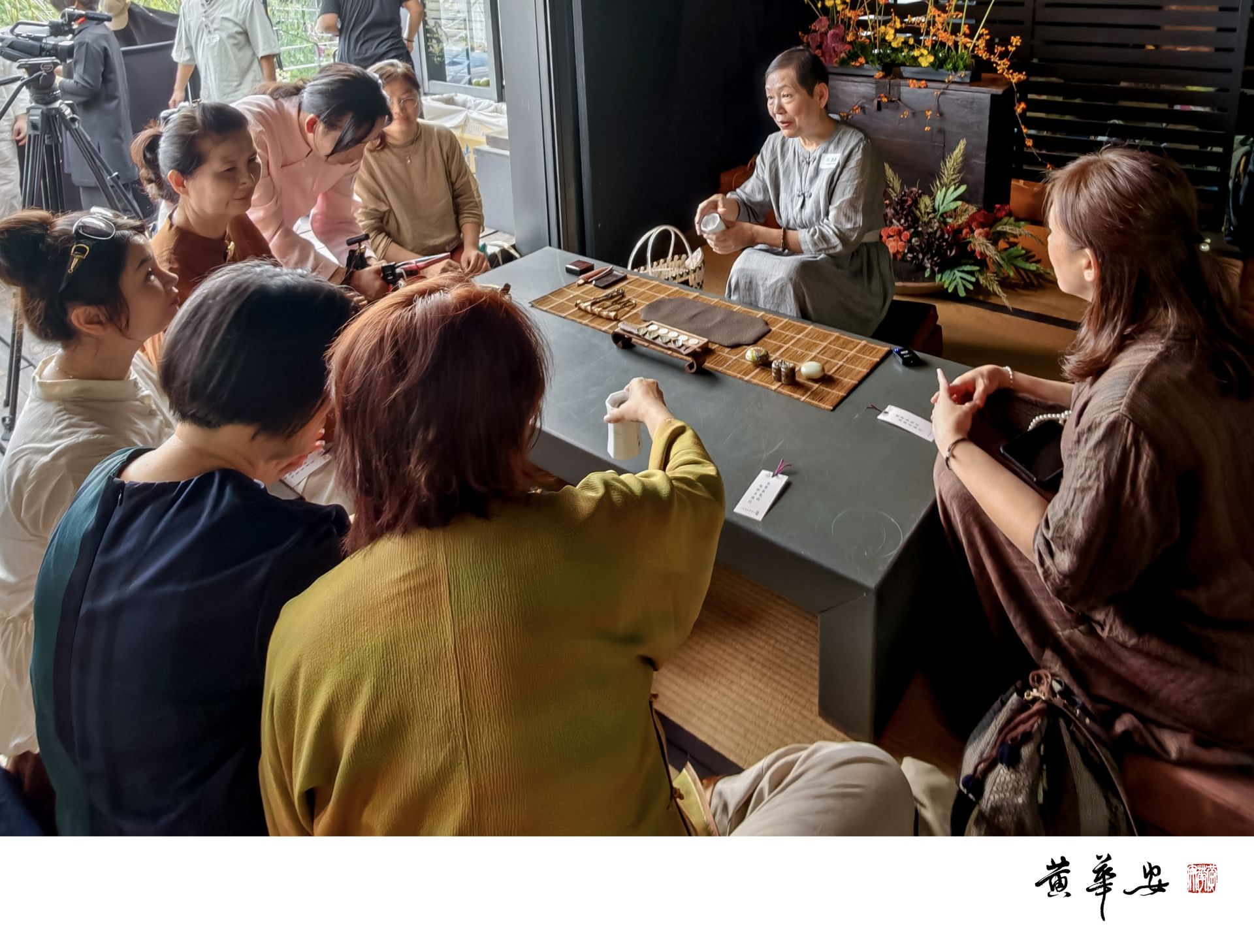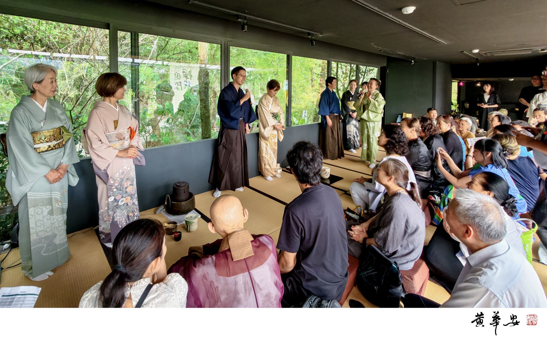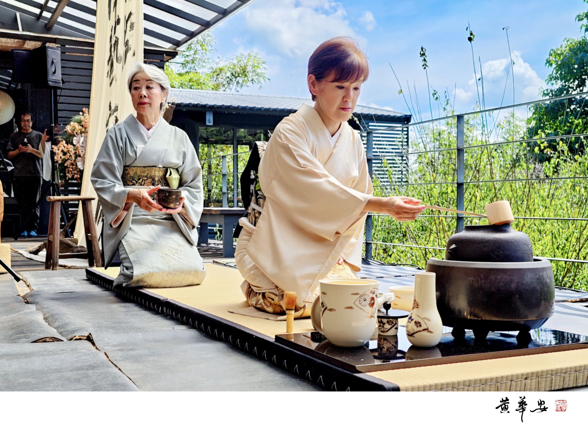 日本藝術家於榻榻米間詮釋日本茶道之美,茶香盈室,禪藝精神於言笑之中延續。(圖/記者黃華安攝)