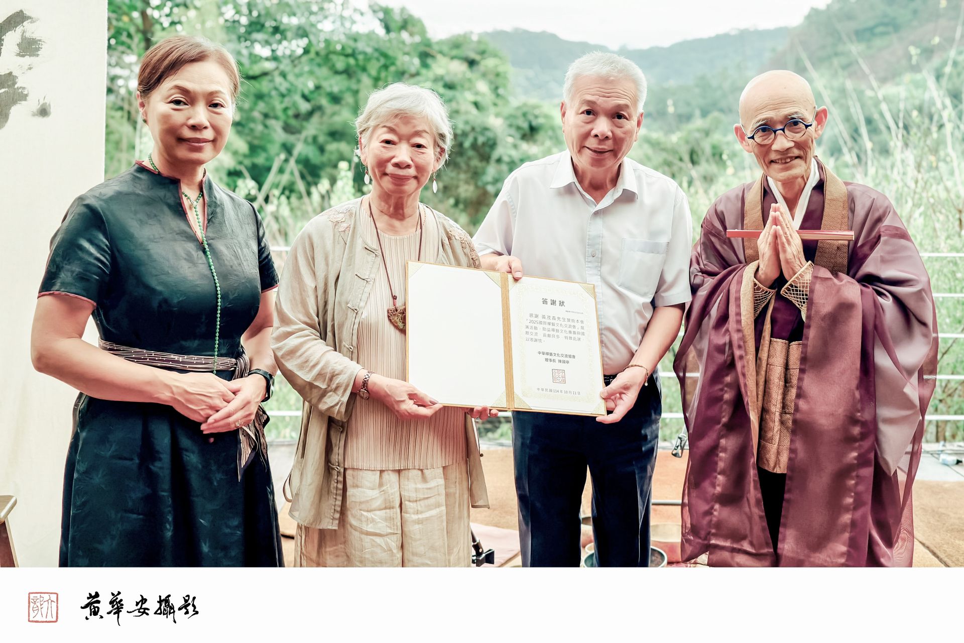 2025年10月11日,新北汐止山光靜謐、茶香縈繞,由中華禪藝文化交流協會主辦、日本廣島西光禪寺合辦的「2025國際禪藝文化交流會」於食養山房圓滿舉行。台、日藝術家在秋意盈然的晨曦相聚,以「靜、簡、和、雅」為題,於山林之境共譜一場以藝入禪、以心會友的雅集。