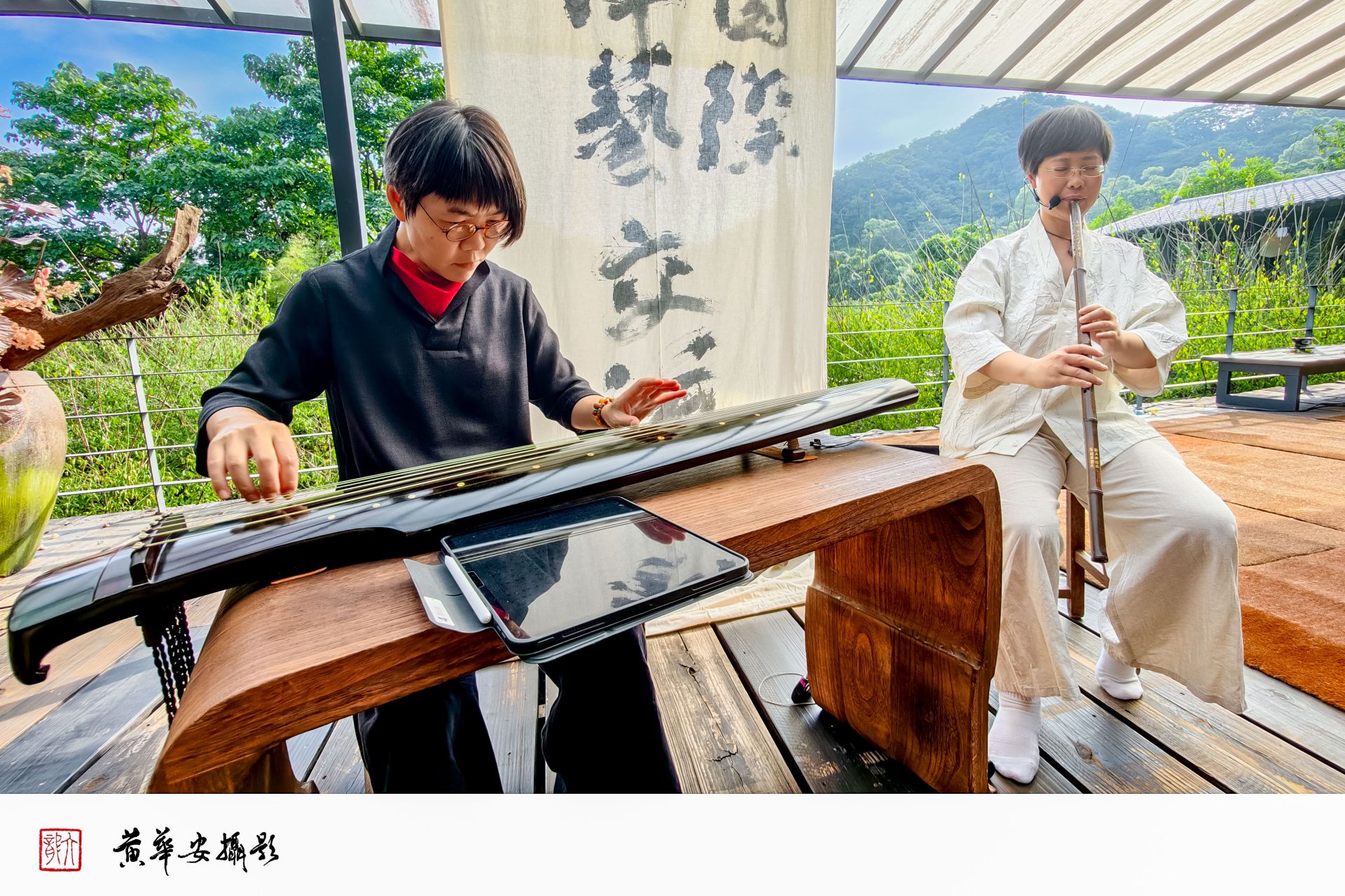 尺八演奏家劉頴容與古琴家黃琴心,對話於山林之間,音韻回環,靜中有動,如水映心。(圖/記者黃華安攝)