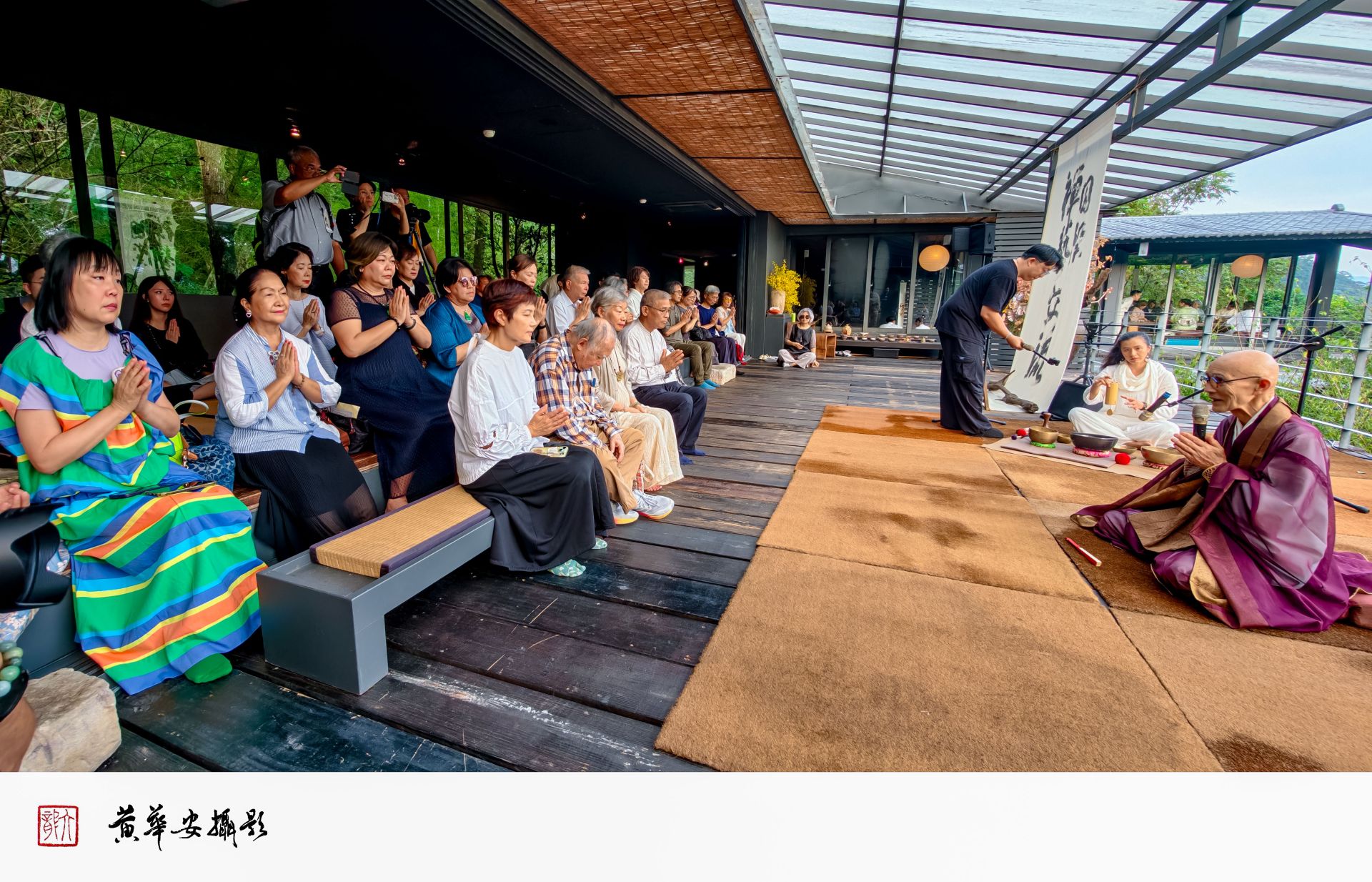 檀上宗謙禪師誦經祈福,山風輕拂,一場心靈的共修於靜默中展開。(圖/記者黃華安攝)