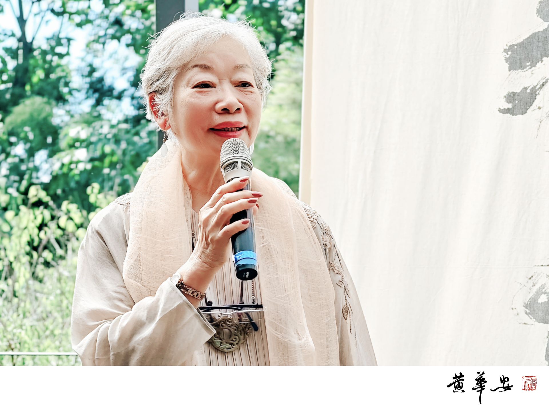 主持人藝術家謝美慶女士以自身修習禪藝的經驗,引導賓客沉心安坐,氣息穩靜如水。(圖/記者黃華安攝)