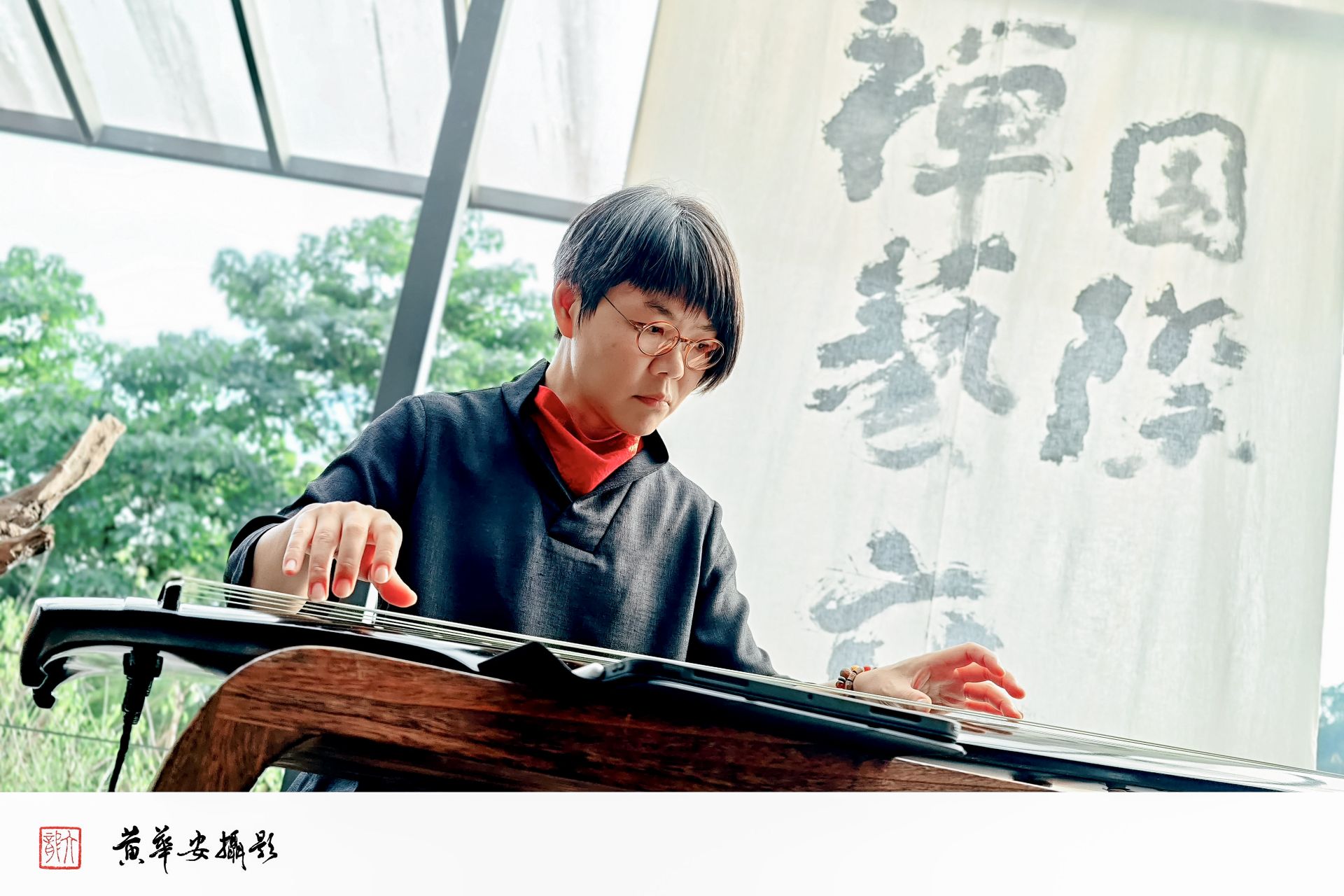 一曲瑤琴清雅韻,台灣著名古琴家黃琴心受邀演奏,古琴低吟,指尖如水波微盪,回聲映入山林,凝聚一室清寂。(圖/記者黃華安攝)