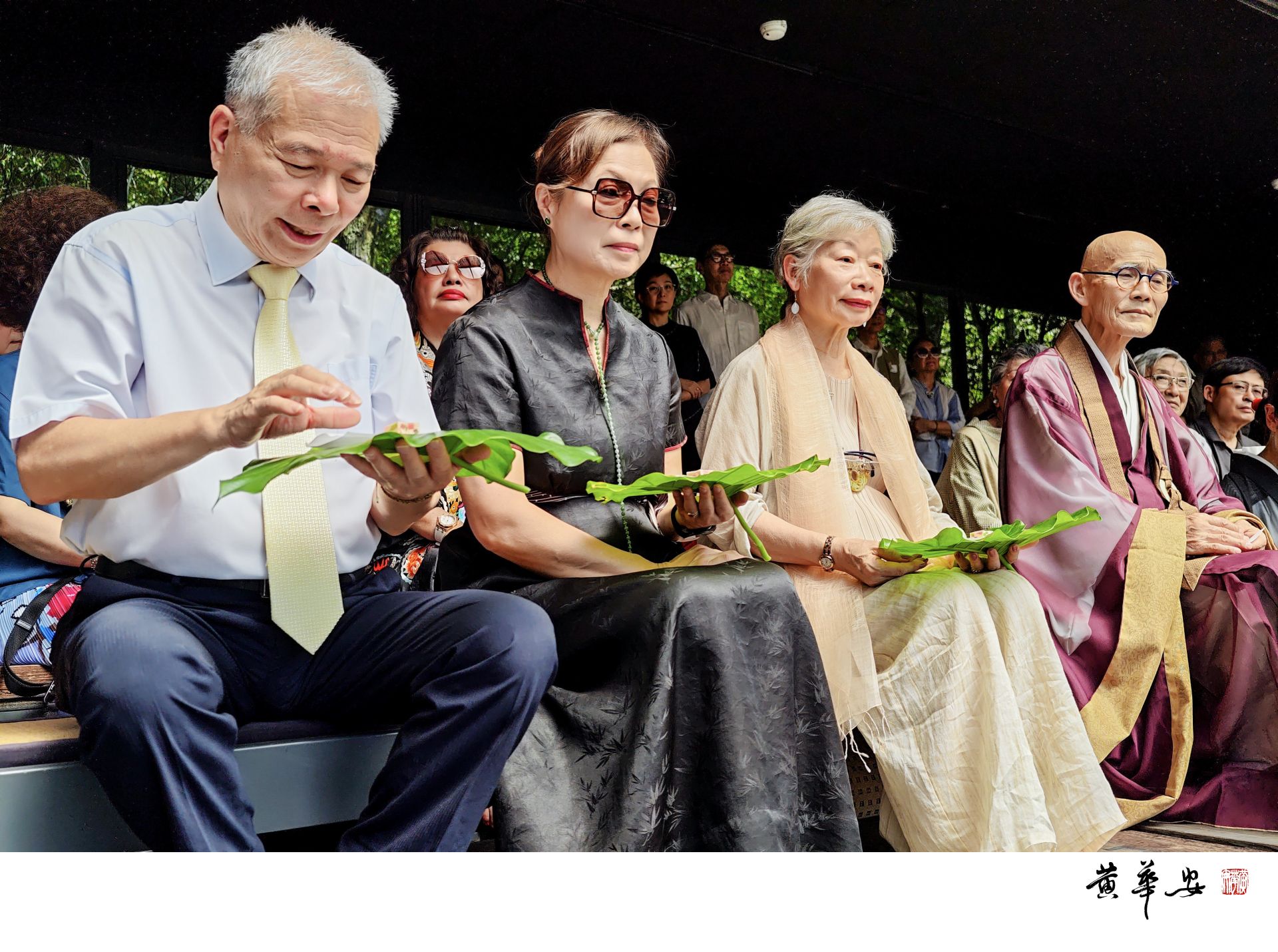 貴賓以蓮葉承點心,寓意自然與心意的交融,席間氣氛寧靜而溫和。(圖/記者黃華安攝)