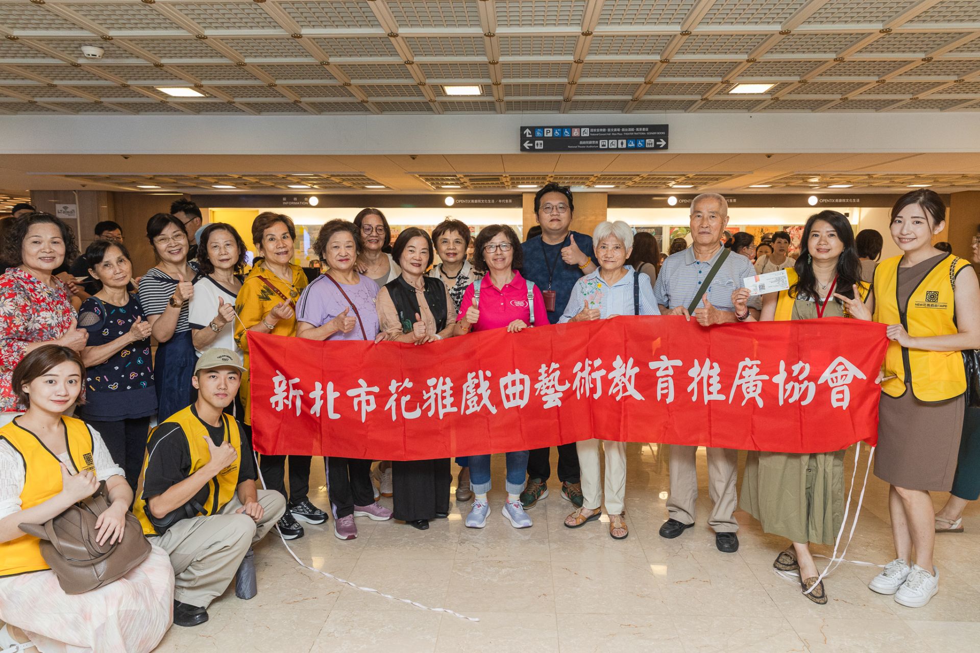 ▲龍馬湖社區照顧關懷據點的獨居長輩到碧湖劇場觀賞「緣戲婆媳」 戲後並和演員合影。(圖/新北市政府社會局提供)