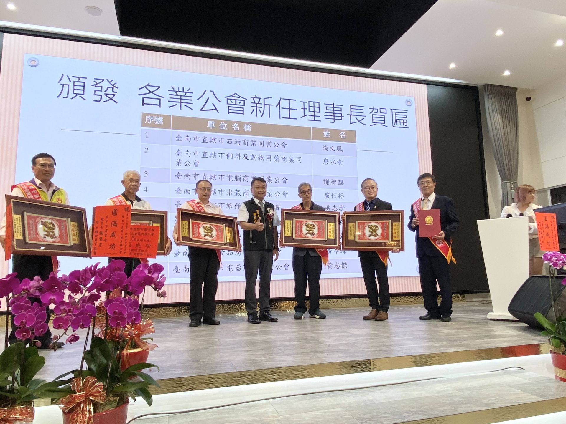隨後由臺南市政府經濟發展局副局長蕭富仁代表市長黃偉哲,頒發「114年度績優商號」與「114年度績優從業人員」獎項,以表彰商界人士對地方經濟發展的貢獻與努力。