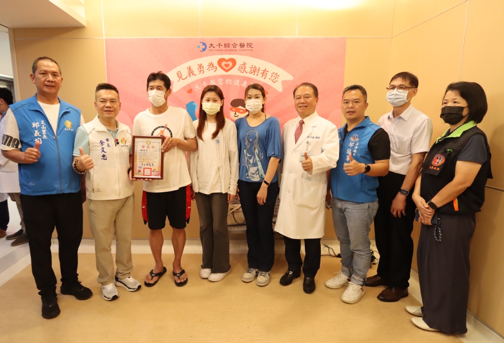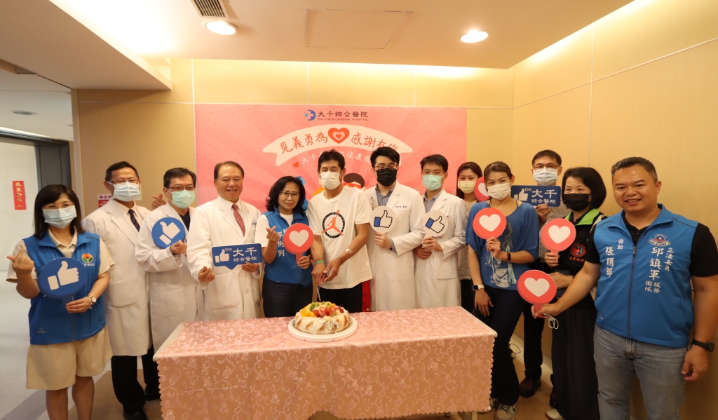 日前苗栗市隨機砍人事件的傷者之一林先生,因保護他人而遭到嚴重刺傷,送至大千綜合醫院急救。在醫療團隊悉心照護下,今(17)日順利康復出院,院方特別為他辦理慶祝會,苗栗縣副縣長邱俐俐、社會處處長張國棟、衛生局副局長莊素玲、苗栗市市長余文忠、苗栗地方檢察署書記官長李鈞暉、犯罪被害人保護協會苗栗分會主任委員陳有昆等貴賓也親臨現場祝賀。林先生及家屬感謝大千團隊專業的醫療照護,也謝謝大家這段日子的關心,讓他們感受到社會溫暖的力量。