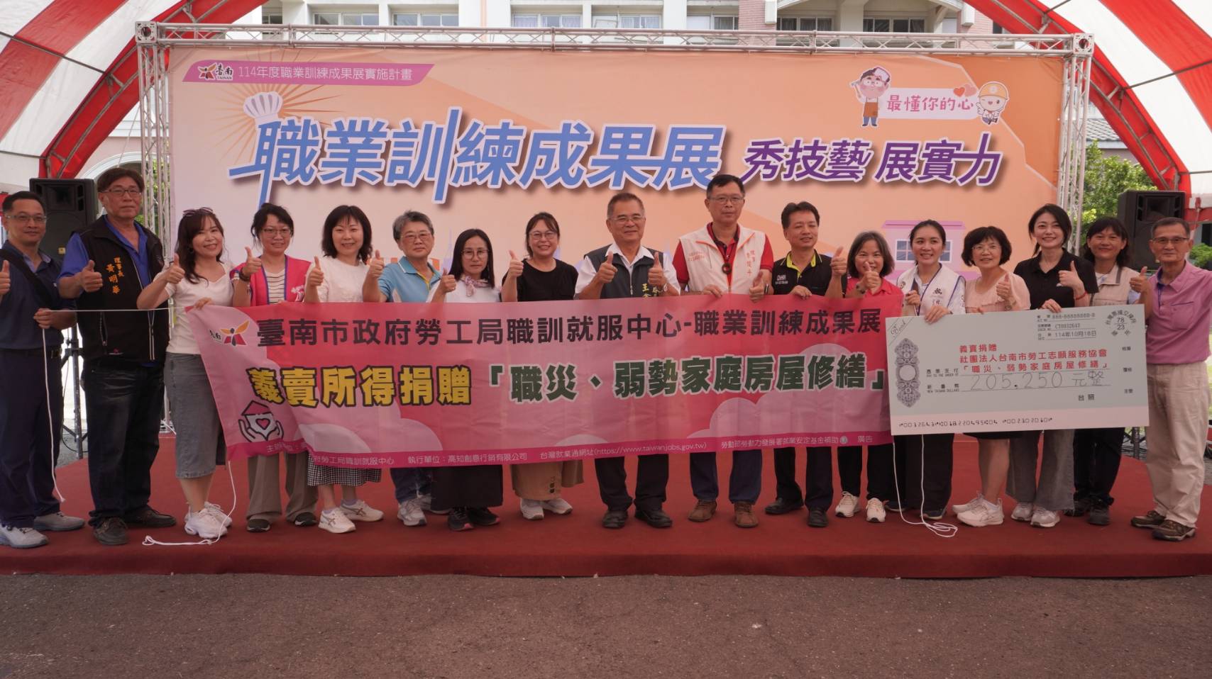 勞工局長王鑫基表示,今年職訓成果展邁入第十週年首度於曾文市政願景園區舉辦,不僅是學員展現學習成果的舞臺,更是推廣職訓的重要契機,期盼能吸引更多民眾投入學習、強化就業競爭力。特別感謝職業訓練單位及學員們的熱情參與及支持,從南到北共同推動職訓扎根在地、持續發展。王鑫基說各辦訓單位是勞工局推動職訓的好夥伴,不僅攜手培育專業人才,也共同展現臺南這座城市的溫暖與愛心,期盼在各界攜手努力下,持續培育更多優秀人才,讓職訓成果在臺南遍地開花。每年訓練單位及學員在展現學習成果之餘,還會將作品轉化為愛心義賣,透過學員親手製作的產品回饋社會,將學習成果轉化為善的力量,形成正向循環。讓職訓效益擴散至社會各角落。今日成果展義賣所得共計新臺幣20萬5,250元,將全數作為「職災、弱勢家庭房屋修繕」公益使用,期盼讓訓練的正向能量持續傳遞,打造有情、有疼心、溫暖的「希望家園」。