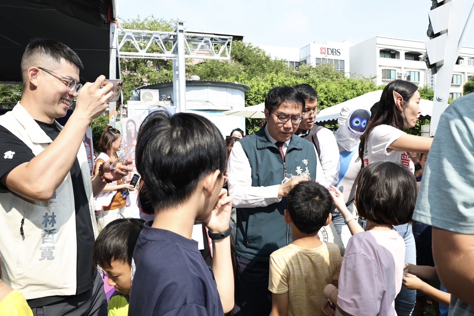 第20屆良友盃兒童繪畫比賽與音符飄揚音樂會今(18)日於台南市立文化中心假日廣場熱鬧登場,台南市長黃偉哲現身關心,小朋友們也熱情大聲喊「市長好!」,黃偉哲並特別準備禮物,現場抽出三位幸運兒,隨後還發送小禮物給小朋友,氣氛熱鬧。