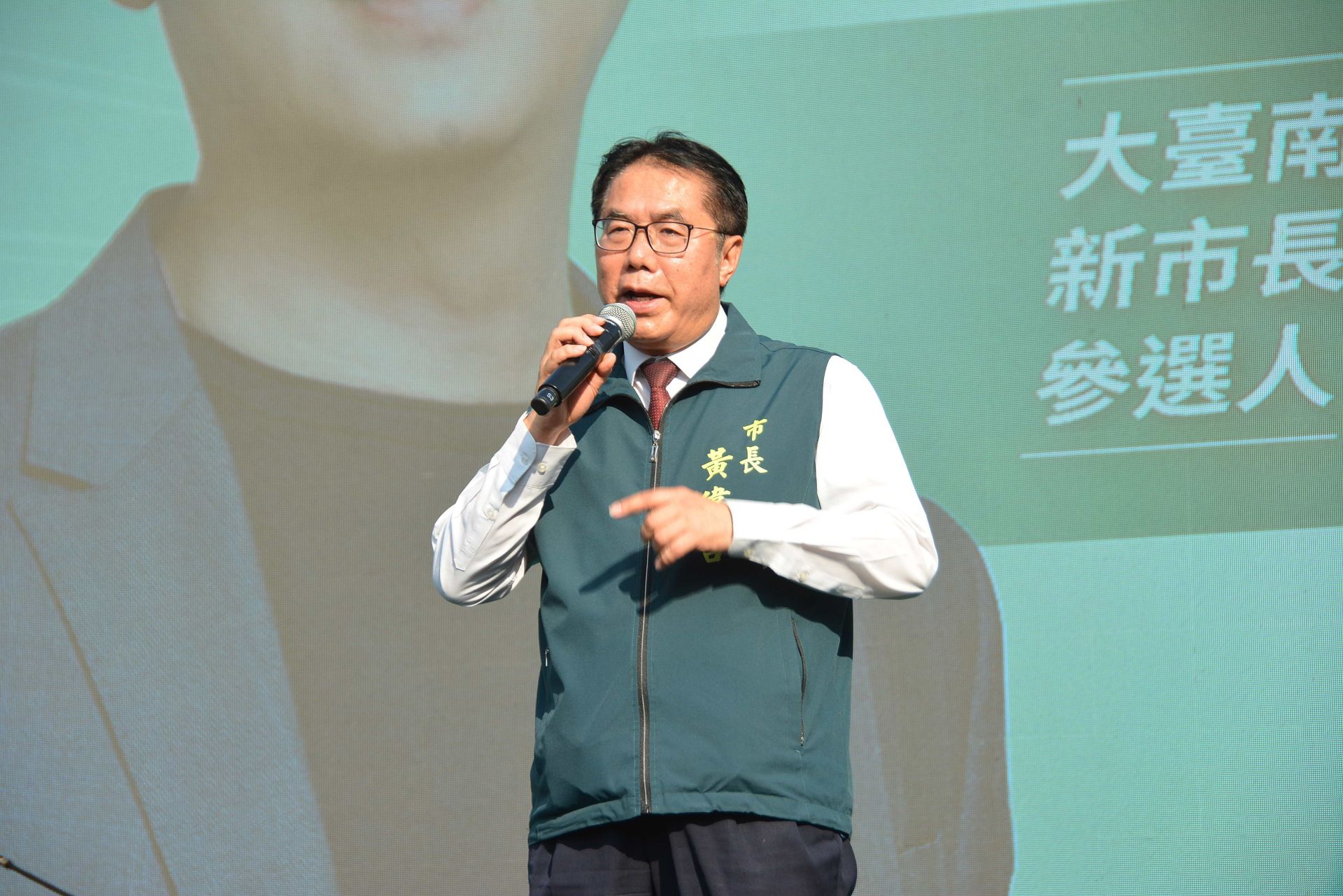 ▲現任台南市長黃偉哲也全力支持林俊憲參選下屆市長。(記者黃雋淮 攝)