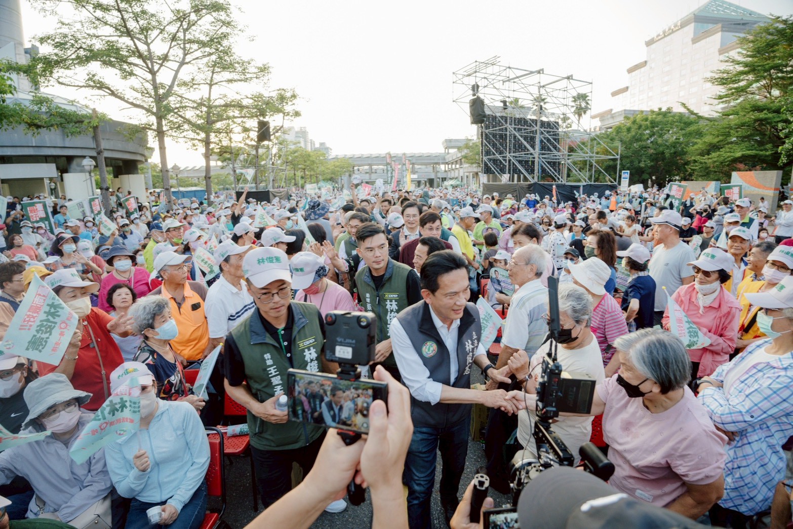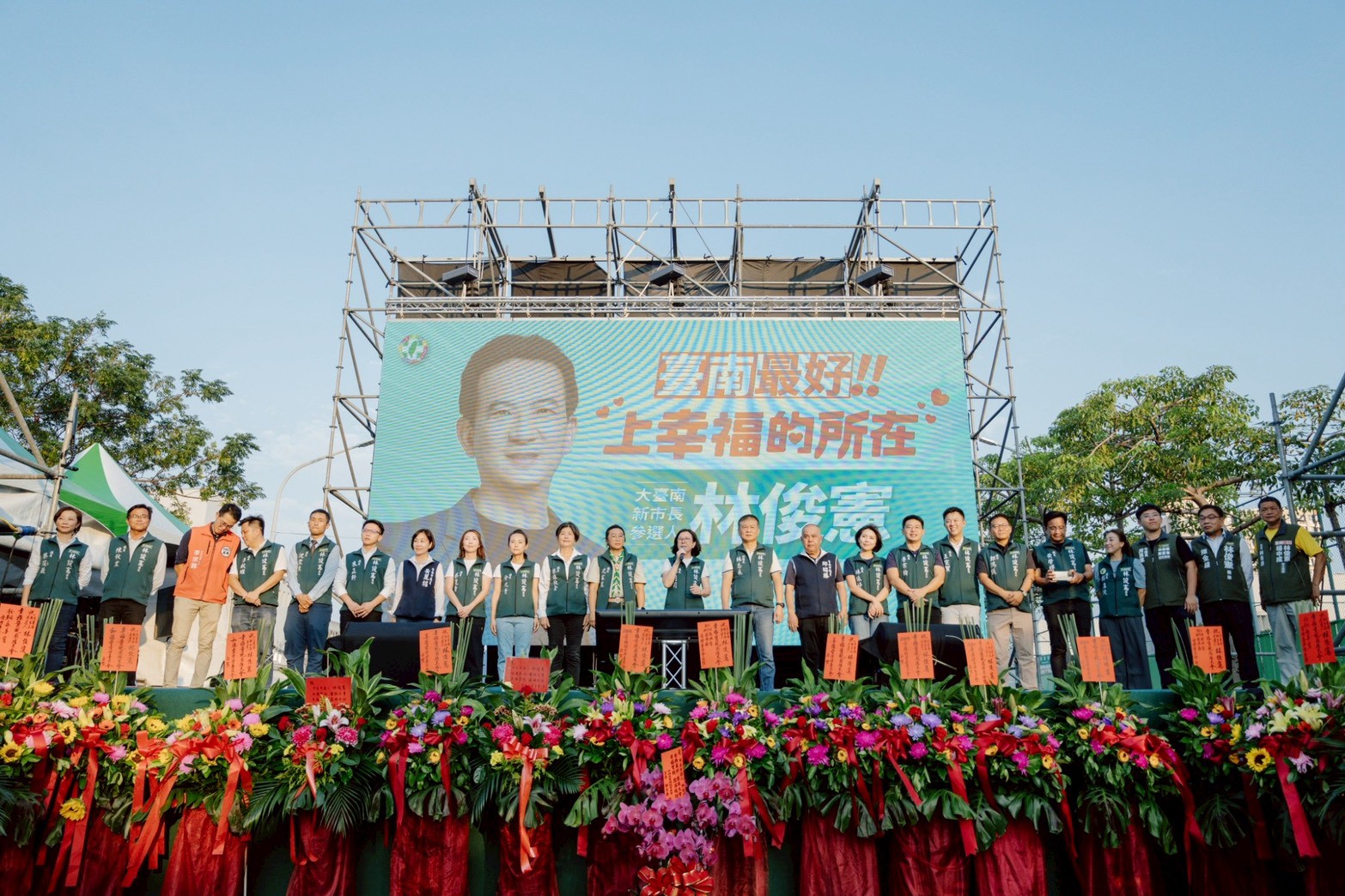 ▲台南市長參選人林俊憲 市府旁舉辦「台南最好,幸福實現」團結大會破萬人力挺。(立委林俊憲團隊 提供)
