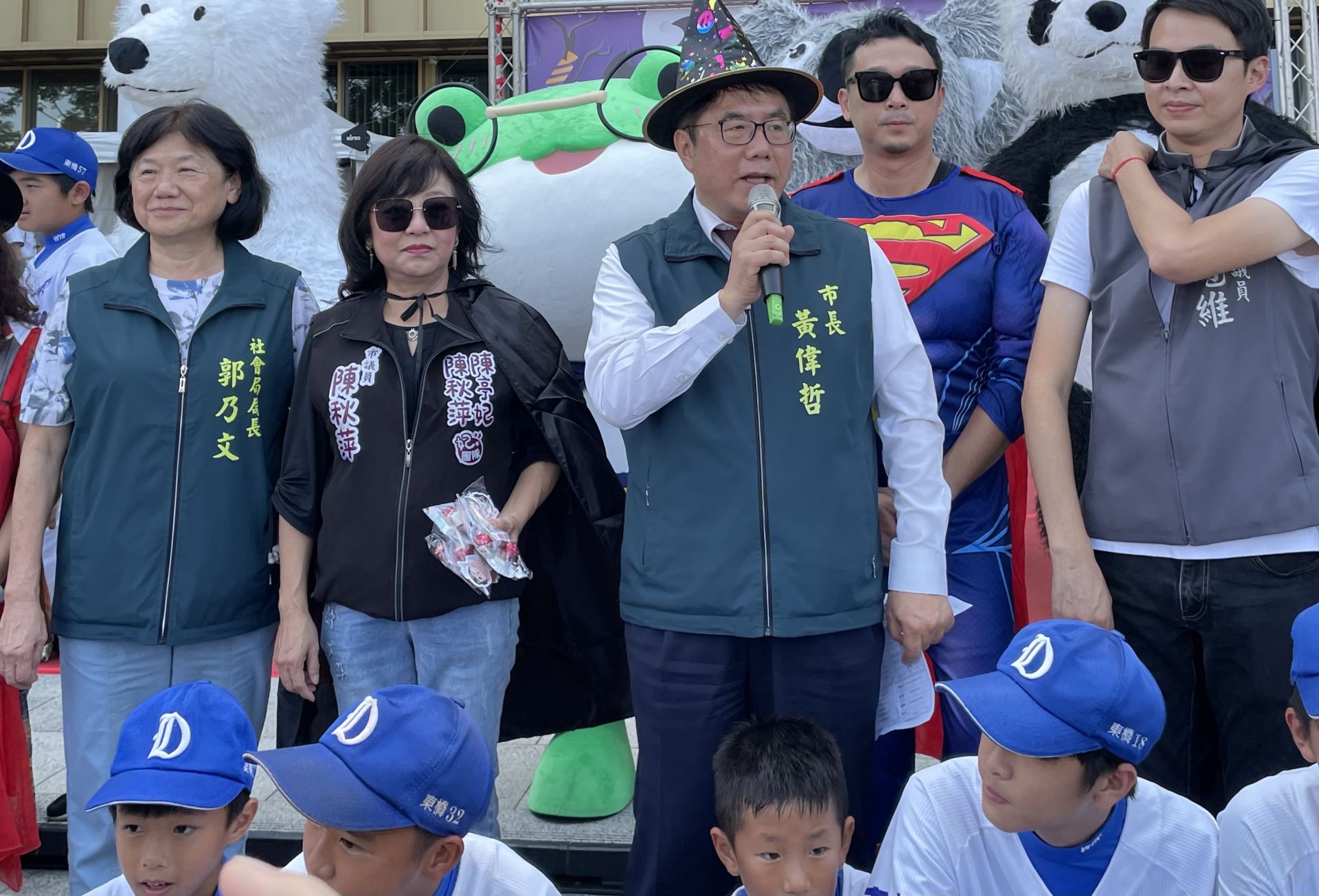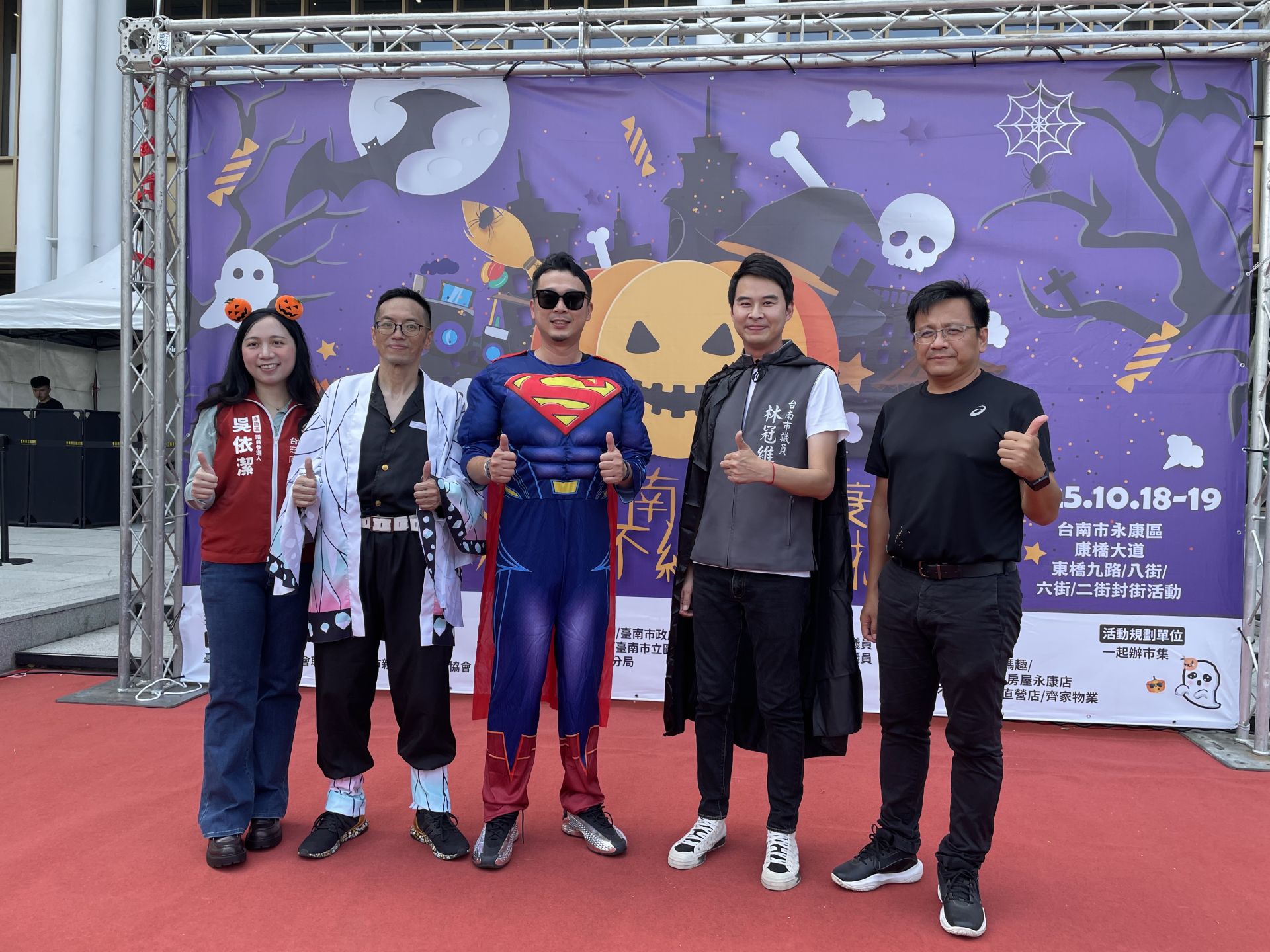 台南市長黃偉哲化身魔法師,與大小朋友一起變裝踩街,大喊「不給糖就搗蛋」,現場笑聲不斷、氣氛嗨到最高點。黃偉哲表示,永康區近年發展有目共睹,特別是東橋重劃區新興社區林立,透過區公所、社區管委會聯合會、總圖與商圈的合作,讓萬聖節遊行規模逐年擴大,有望成為全台南最大萬聖節活動。他強調,這樣的活動不僅能啟發孩子創意、體驗多元文化,更寓教於樂、促進家庭情感與社區凝聚力,展現永康的熱情與創意。