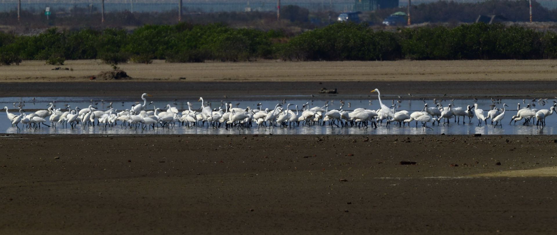 ▲時序已入秋,來台度冬的「國際明星鳥」黑面琵鷺陸續到台南報到。(記者黃雋淮 翻攝)