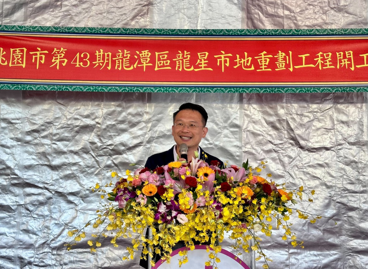 【視傳媒記者袁慧心/桃園報導】桃園市副市長蘇俊賓今(19)日上午前往龍潭區,出席「龍潭龍星市地重劃區重劃工程動工典禮」。蘇俊賓表示,本案為全市首件公保地解編自辦重劃工程,亦是桃園市土地活化的重要里程碑,感謝地政局團隊多年來克服中央與地方程序,成功以市地重劃方式完成公保地解編,讓居民得以享有自身應有的權益,同時落實公共設施建設,共創雙贏。未來園區將以全齡友善為核心理念,除了設置兒童遊樂設施,更將於園區內種植油桐花與茶樹,結合龍潭茶葉文化推動教育體驗,打造兼具生態與文化特色的休憩場域。