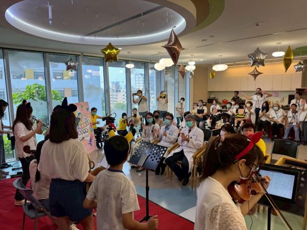 今日的這場氣球魔法師創意造型與互動演出,為飛象家園帶來視覺驚喜,魔法師除帶來演出並親手為臥床孩童送上專屬氣球祝福,把快樂送進機構內各角落。此外小豆芽室內樂團則以童趣旋律陪伴現場親子,營造心靈慰藉與情感連結。