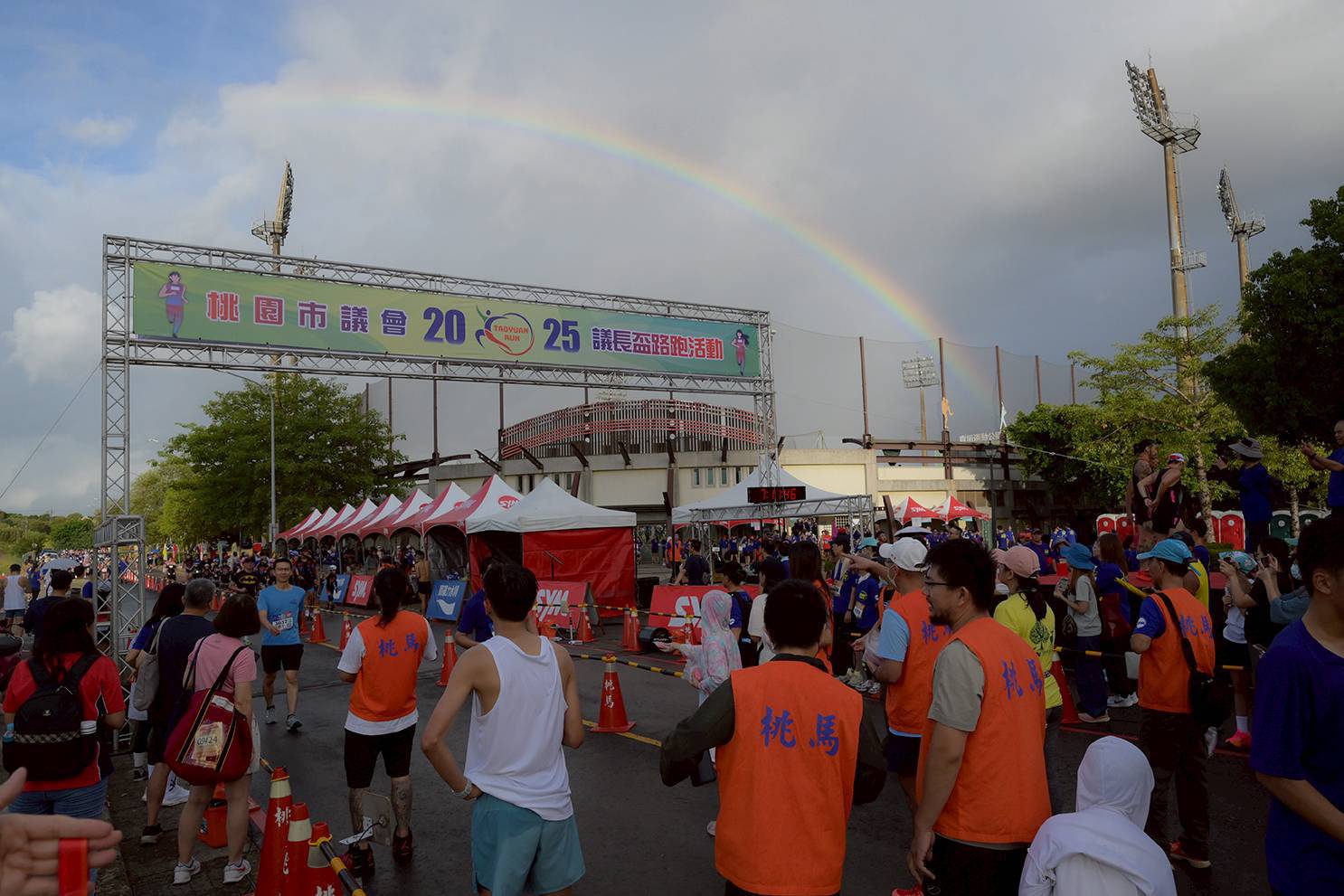 天上彩虹也一起見證桃園市議會議長盃路跑盛大開跑。圖/議會提供