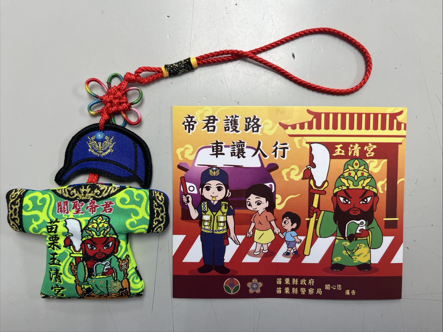 交通安全月「帝君護路 車讓人行」,信仰加持、警民共護,平安出行再升級!苗栗縣警察局與苗栗市玉清宮首度聯名推出「關聖帝君警察制服小神衣」,將地方信仰文化與交通安全教育創意結合,傳遞「安全行車,是最帥的信仰」理念,期盼藉由神明護佑與警方守護的雙重力量,喚起全民對交通安全的重視。