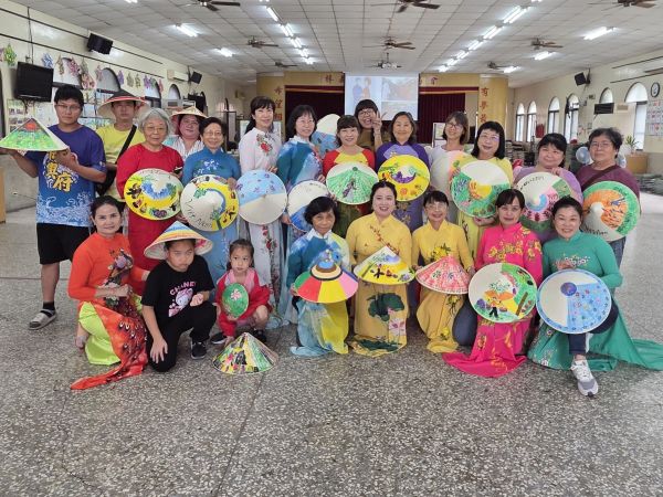 課程第一天由阮氏藥老師帶來越南笠帽DIY與傳統舞蹈、烤肉米線及羅旺果飲DIY等豐富課程,笠帽在越南文化中佔有重要地位,不僅是遮陽擋雨的實用工具,也是家家戶戶熟悉的生活日常,大小朋友一同親手彩繪斗笠帽,學習越南傳統斗笠舞,再搭配香氣四溢的越南美食,滿滿越南風情,讓人彷彿置身異國,老師也分享來臺灣後的心路歷程並進行有獎問答,學員們踴躍搶答,熱鬧氣氛嗨翻全場。
