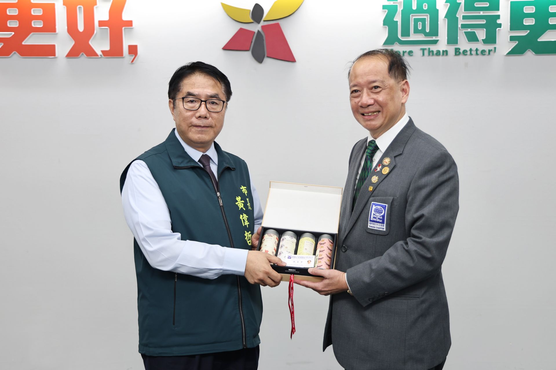 ▲市長黃偉哲與台南市會張富全會長互相贈禮合影。(新聞處 提供)