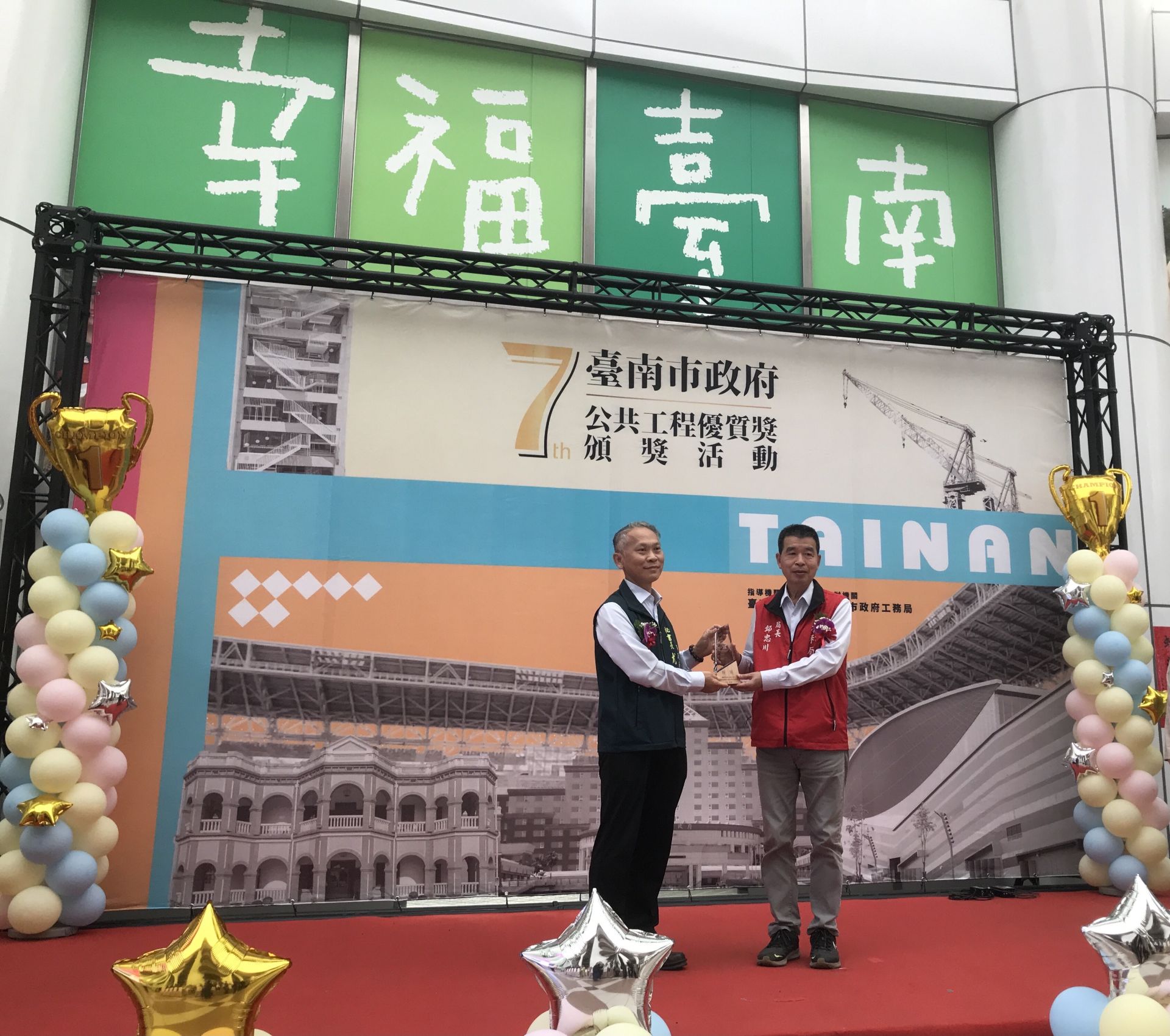 南市第七屆公共工程優質獎頒獎典禮於今(22)日隆重舉辦,水利局囊括逾1/3獎項,提報9件亮點工程獲評審委員高度肯定,繳出「2特優3優等4佳作」的史上最佳成績單,獲獎數量及等第更是笑傲群雄。秘書長尤天厚出席頒獎並對水利團隊積極投入各項治水防洪建設,又能兼顧施工品質及安全與生態永續發展等面向表示讚許。