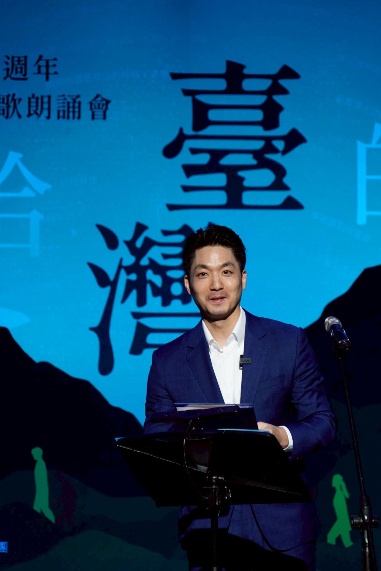 朗誦會中,蔣萬安以臺語深情誦讀詩人賴和〈南國哀歌〉節選。詩句間沉著而堅毅,描摹詩人在壓迫下仍不屈的心志。蔣萬安表示,賴和不僅以醫者身分關懷弱勢、義診救人,更以詩文啟發後進,其作品對臺灣新文學運動影響深遠,也體現了他對民族與民權的信念。