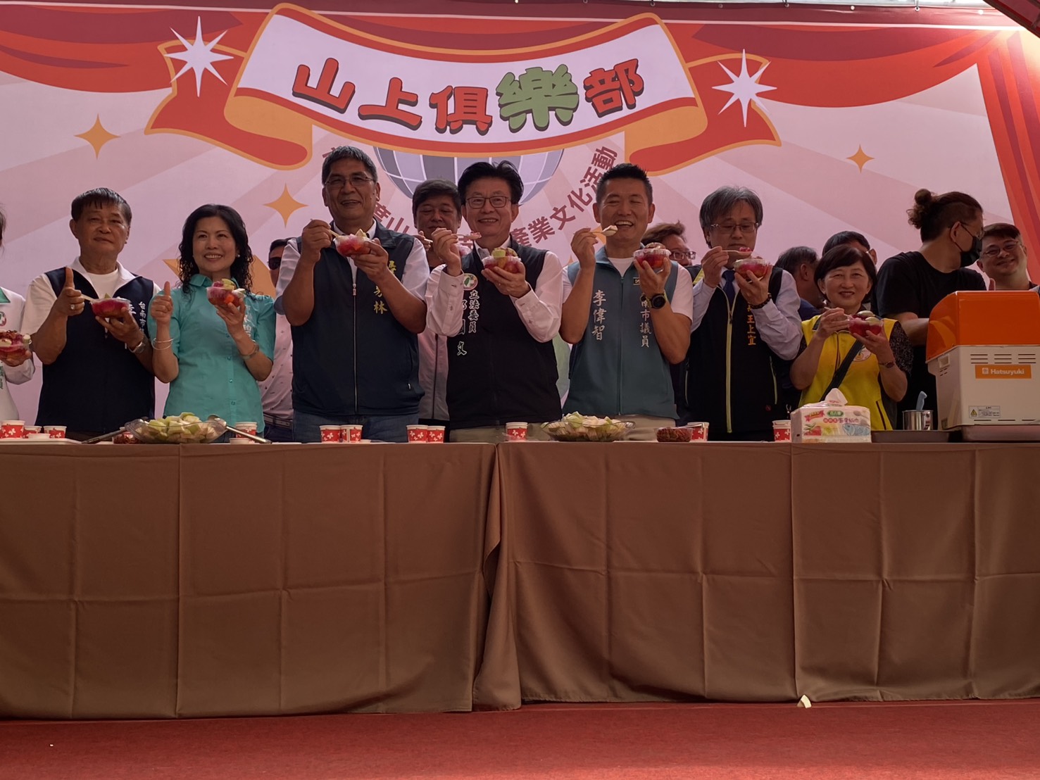 今(24)日山上區農會於供銷部前廣場盛大舉辦「山上俱『樂』部」芭樂產業文化活動,現場湧入大批民眾共襄盛舉,在音樂與燈光交織下,體驗一場結合芭樂產業、地方文化與派對氛圍的創意盛會。