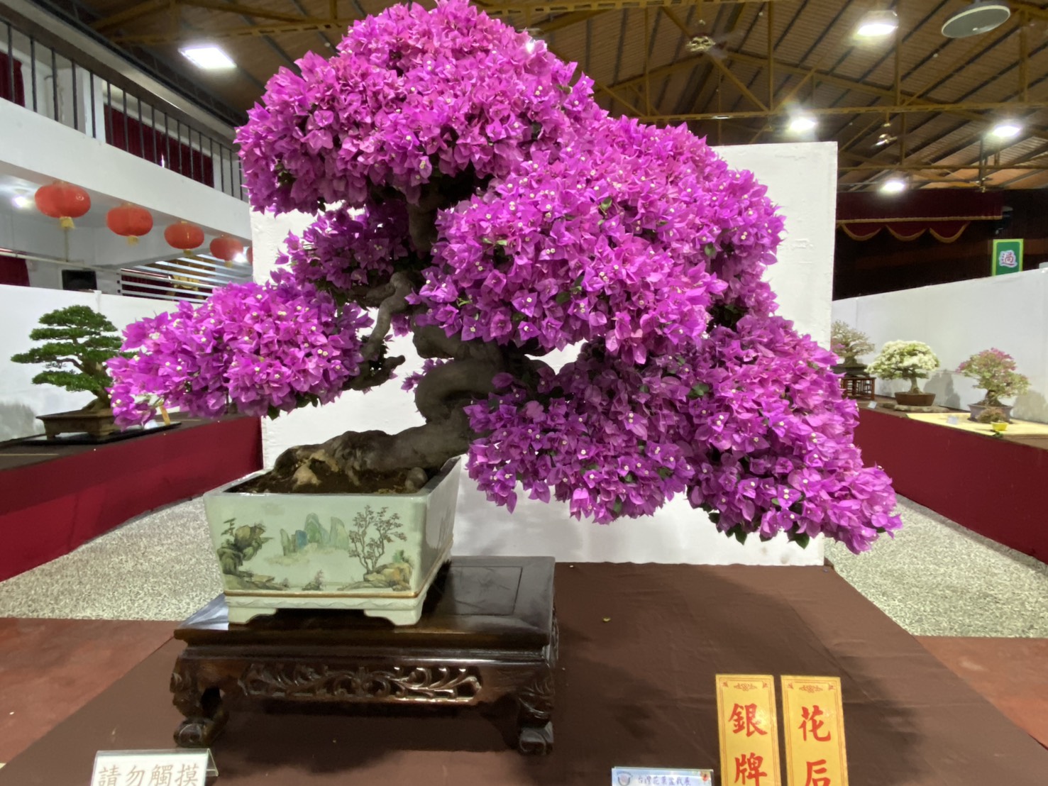 農業局長李芳林指出,此次展覽網羅全國頂尖藝術盆栽,共展出25種樹種、92件精選作品與110棵盆栽,種類多樣、風格獨具。評審團經嚴謹評選,選出總冠軍、菓王、花后,以及各組金、銀、銅牌得主。其中總冠軍由薛石柱的九重葛榮獲,作品透過精緻設計,展現盆器與植栽的和諧搭配,不僅結構成熟穩定,姿態自然優美,更散發出氣韻平衡的藝術氛圍,深獲評審一致肯定。
