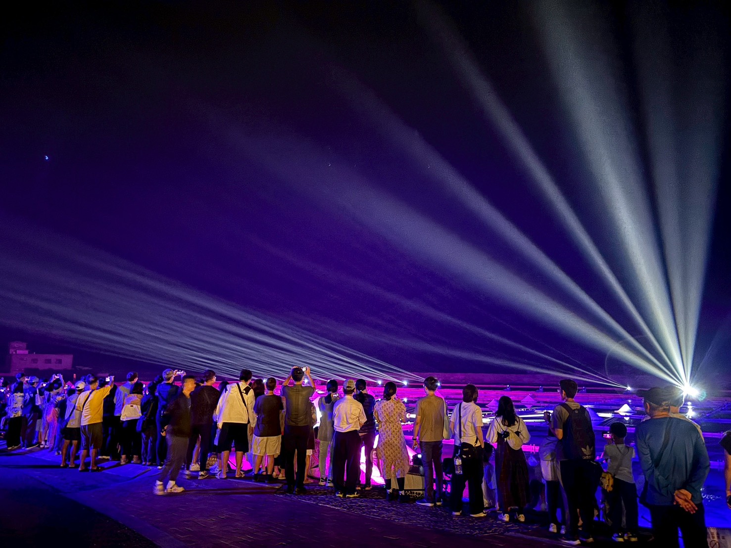 ▲遊客在北門井仔腳鹽田欣賞燈光秀。(觀旅局 提供)